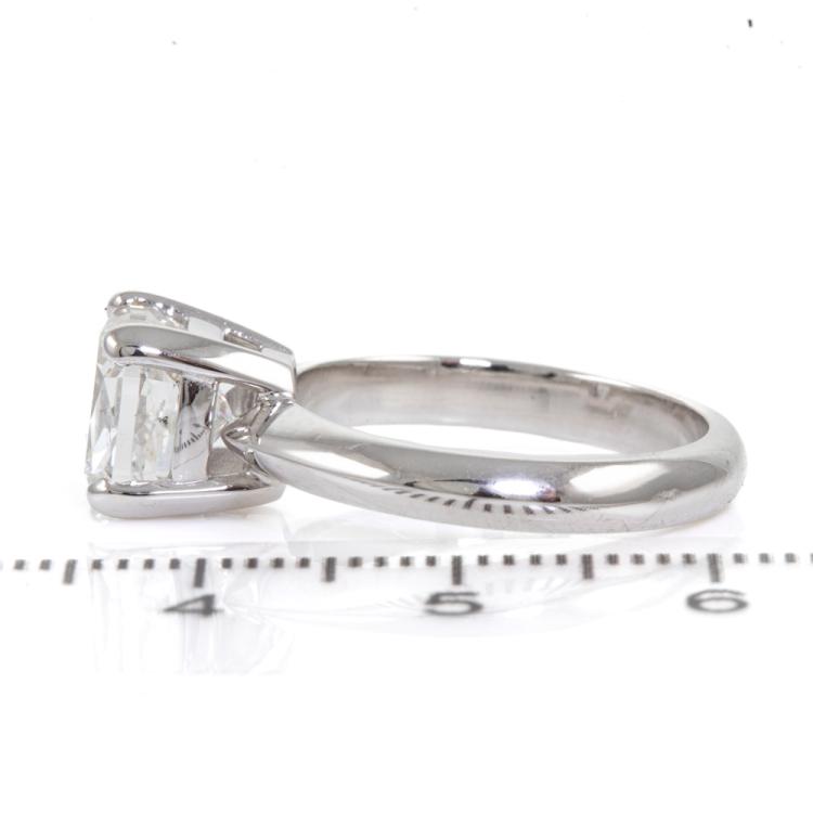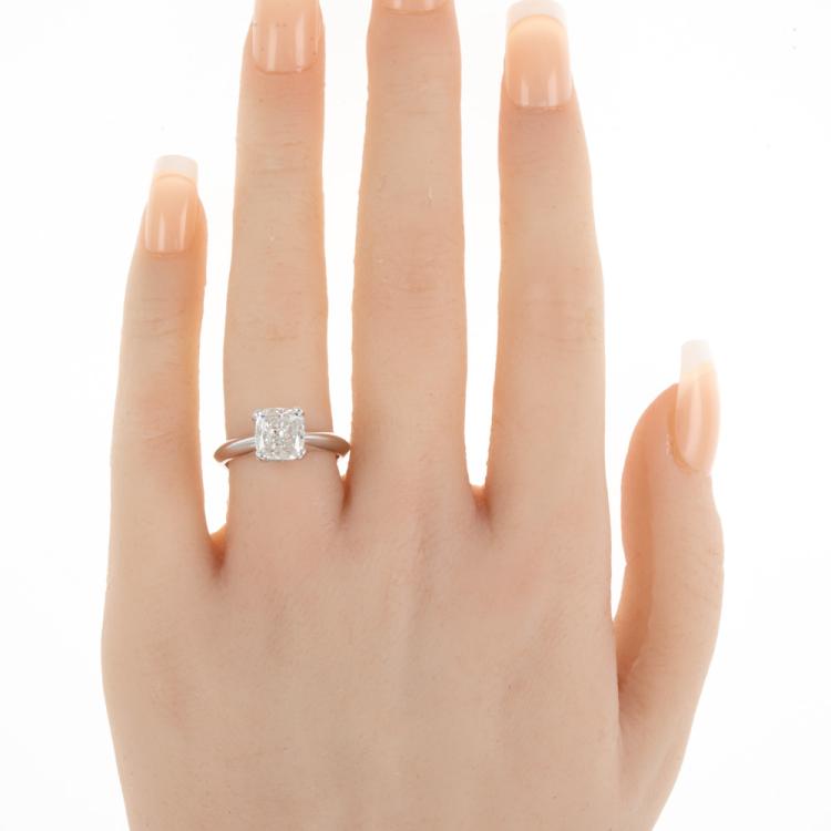 Diamond solitaire ring with a cushion cut Natural Diamond of 3.01ct (with GSL Report graded as H P1 #AA69005). Platinum. Ring size M. Band width 3.1mm. Weight: 7.5g. (New)