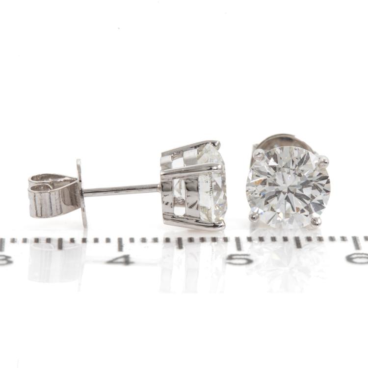 Diamond studs with 2 round brilliant cut natural Diamonds totalling 3.02ct (with GIA reports graded as H SI2, #6471199956, 7466697830). 18ct white gold. Weight: 2.7g (New)