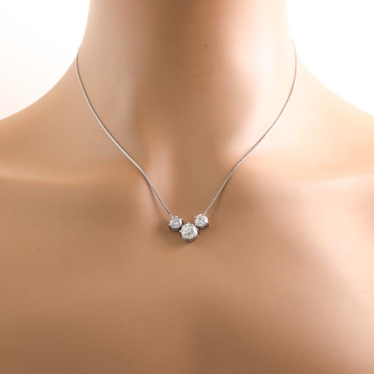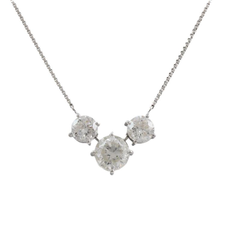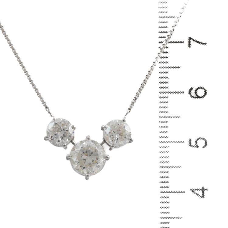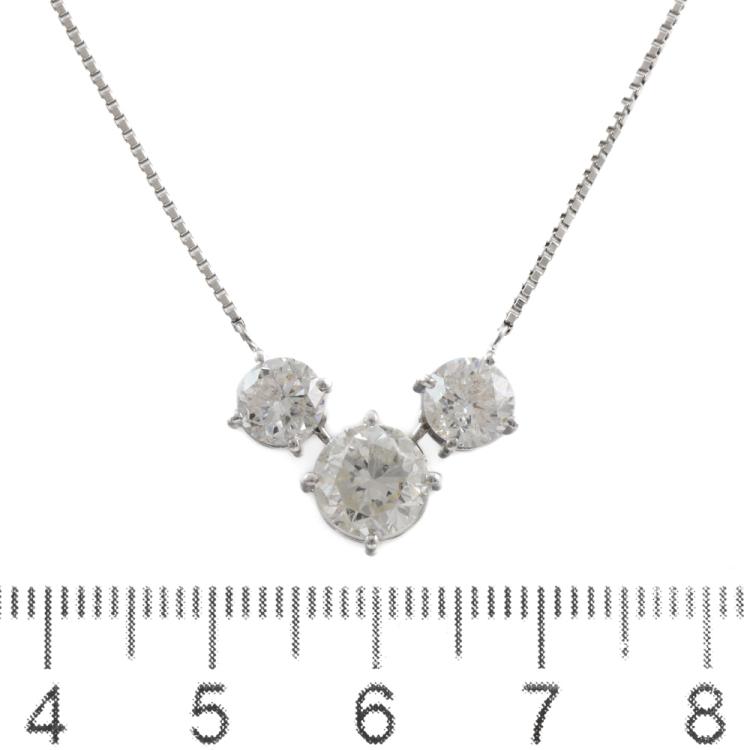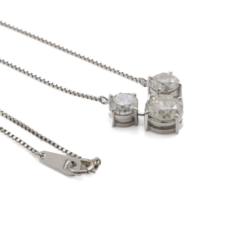 Diamond necklace with 3 round Natural brilliant cut diamonds totalling 3.07ct (Estimated grading: I-J P1-2). Platinum - 900 with platinum 850 chain attached. Chain maximum length 42.0cm. Weight: 5.2g. With Valuation Certificate# 419214 (Pre-owned)