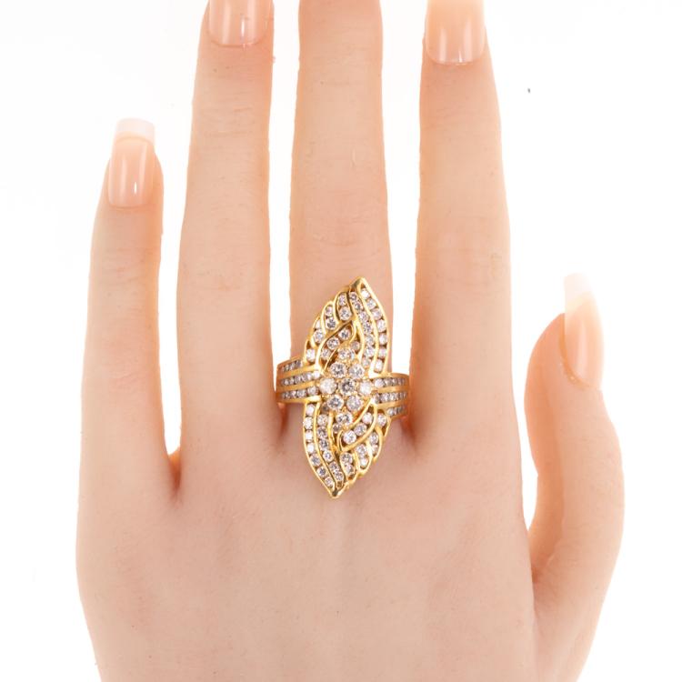 Diamond Dress ring with round Natural Diamonds totalling 3.40cts (Estimated grading: H-I SI). 18ct yellow gold. Ring size S. Band width: 6.4mm - 4.1mm. Weight: 22.0g. With Valuation Certificate 418163. (Pre-owned).