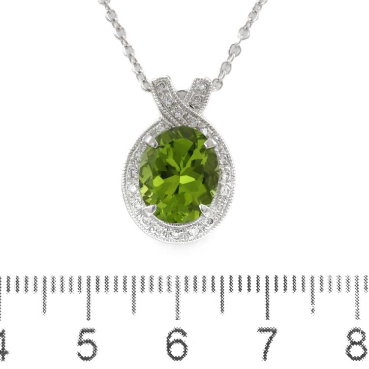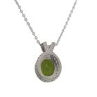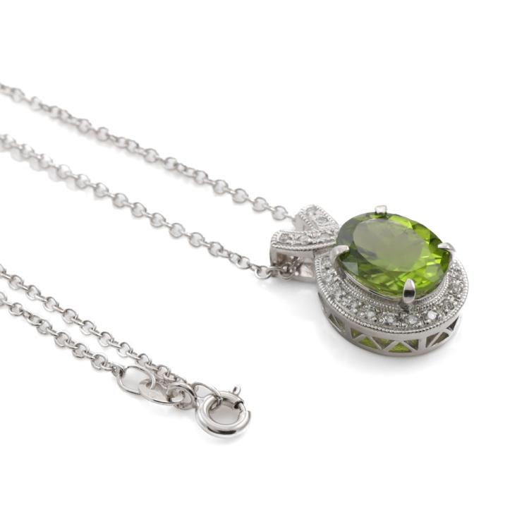 Peridot and Diamond pendant with oval shape Natural Peridot of 3.53ct and round Natural Diamonds totalling 0.20ct. Platinum - 900 with white gold 45.5cm chain. Weight: 7.9g. (Pre-owned)