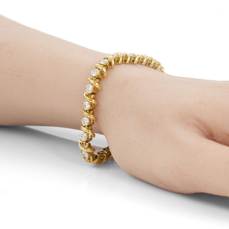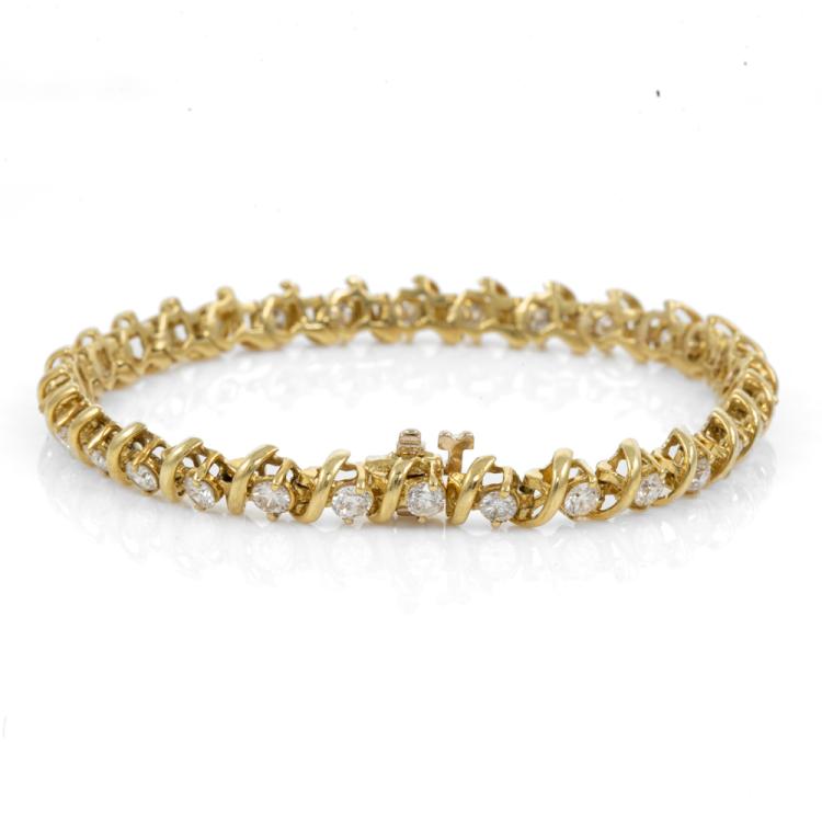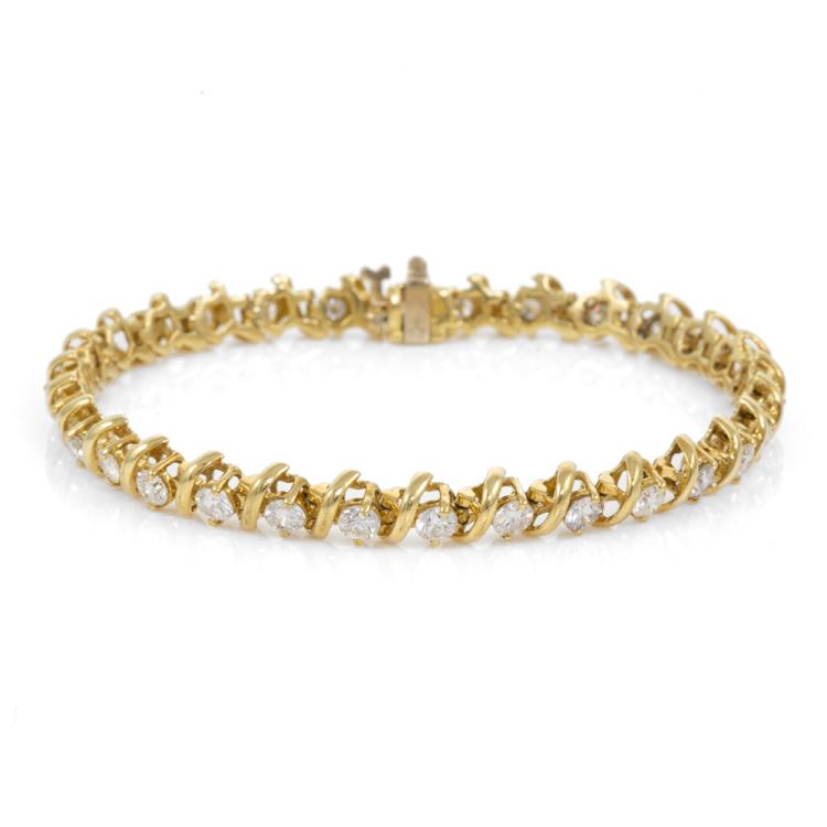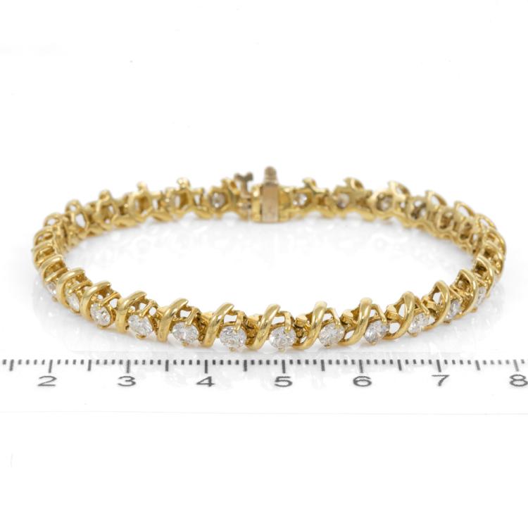 Diamond bracelet with round natural Diamonds totalling 3.60ct (Estimated grading: G-H VS-SI). 18ct yellow gold. Length: 18.5cm. Weight: 17.1g. With Valuation Certificate #418570. (Pre-Owned)