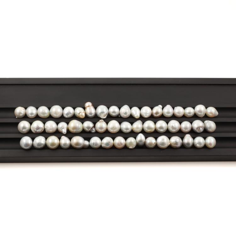 Parcel of 50 mixed loose undrilled semi-baroque South Sea Pearls of approximately 11.4mm - 14.3mm. Weight: 148.0g. (As New)