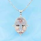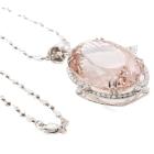 Morganite and Diamond pendant with an oval shape natural Morganite of 76.97ct (with GSL report #AA68099/1) and round natural Diamonds totalling 1.50ct (Estimated grading: G-I SI). 18ct white gold with 18ct white gold 50cm chain. Weight: 35.9g. With Valuation Certificate dated 02/04/24. (Pre-owned)