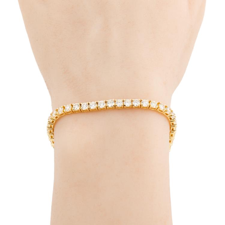 Diamond tennis bracelet with 48 round brilliant cut Natural Diamonds totalling 7.89ct (Estimated grading: J-K VS-SI). 18ct yellow gold. length: 18cm. Weight: 12.5g. With Valuation Certificate #418450. (New)