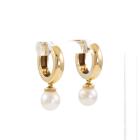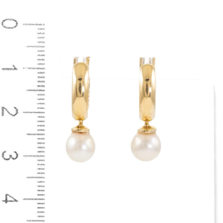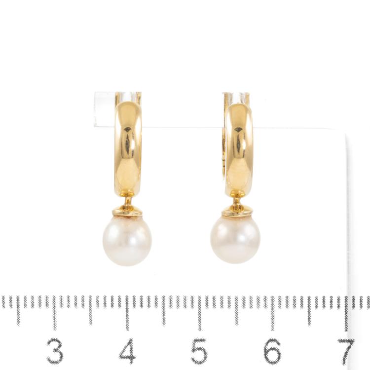 Pearl drop huggie earrings with 2 cultured Pearls of 7mm. 18ct yellow gold. Weight: 5.8g. (Pre-owned)
