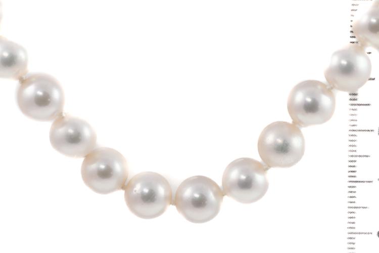 Pearl necklace with 46 Akoya Pearls of 8.5mm - 8.9mm. 14ct white gold ball clasp. Length: 45cm. Weight: 44.2g. (Pre-owned)