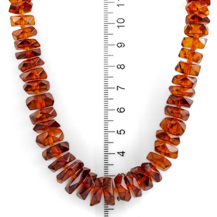 Amber necklace with graduated natural Amber uniform disc-shape beads of size 13mm - 8.3mm. Length: 43.0cm. Weight: 29.5g. (Pre-owned)