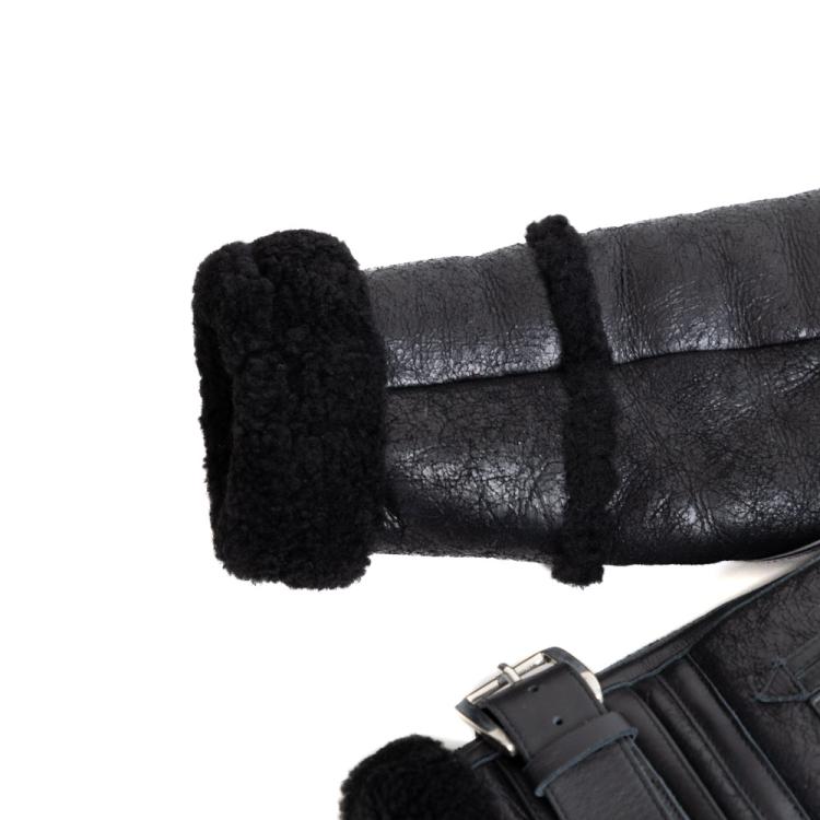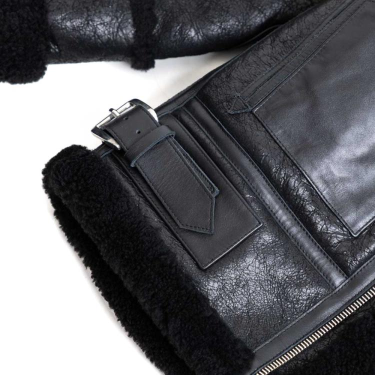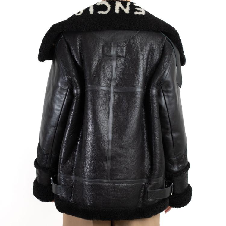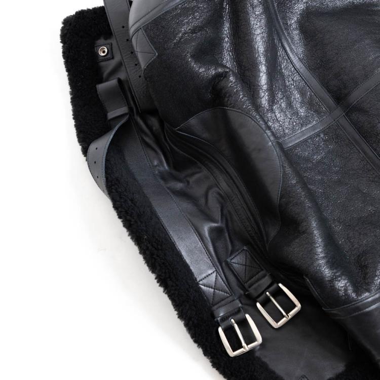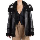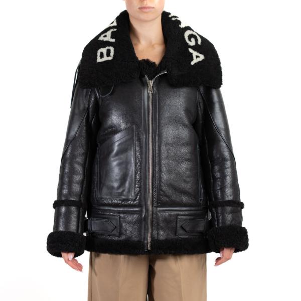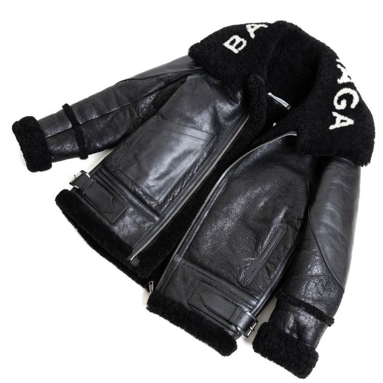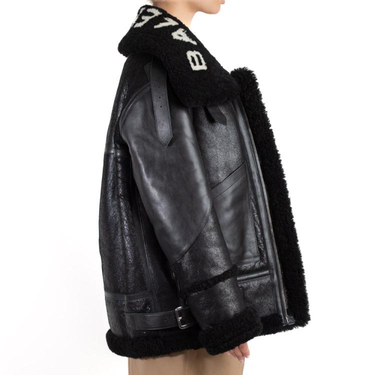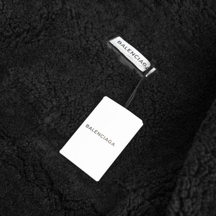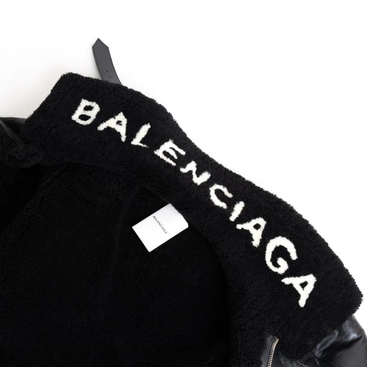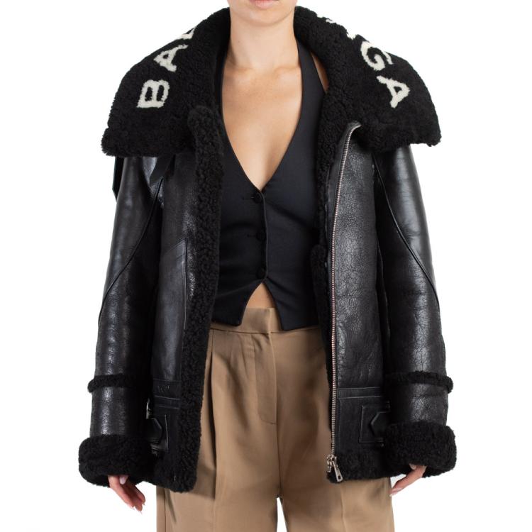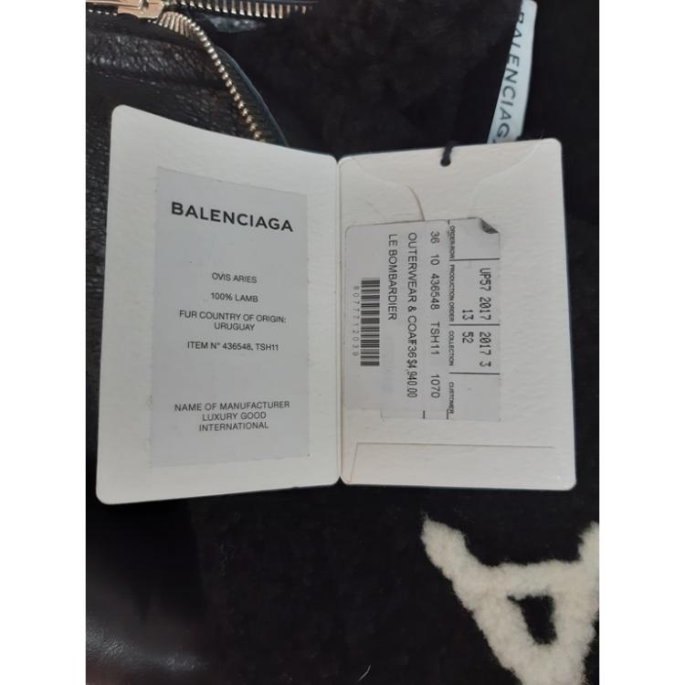 Balenciaga Le Bombardier jacket in black. Handcrafted with lambskin leather, features a lamb fur collar, long sleeves, front patch pocket, logo embroidered oversized collar, zip fastening front, side pocket, silver tone hardware and buckle details. Size FR36 with approximate dimensions: 74cm(H) * 48cm(W). Washing Instructions: specialist cleaning. Accompanied by Balenciaga original tag and cloth dust bag. (Pre-owned)
