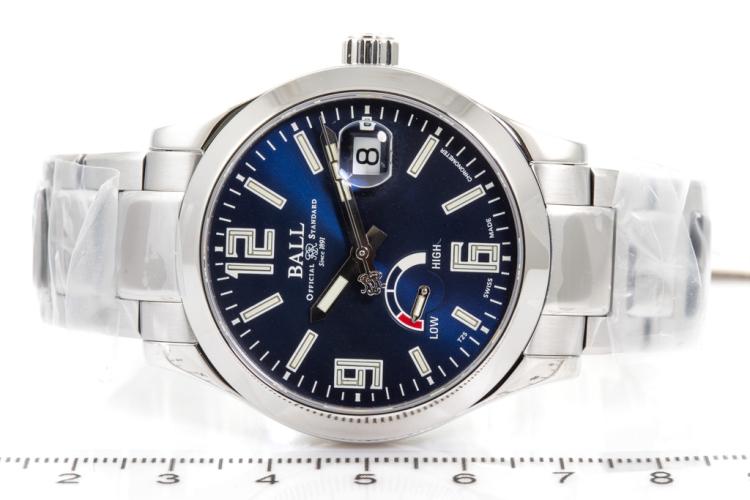 Ball Engineer III Pioneer Power Reserve stainless steel automatic mens watch. Black dial, power reserve subdial, date, case diameter: 40mm, wrist size: 18cm Swiss made. Ref# PM9026c-SCJ-BK. With Ball stainless steel bracelet and clasp. With Ball Premium International Warranty Certificate Card, Ball Chronometer Certificate Card and Ball box. 12 month FSA warranty. (As new, Note: case and bracelet on original wrapping)
