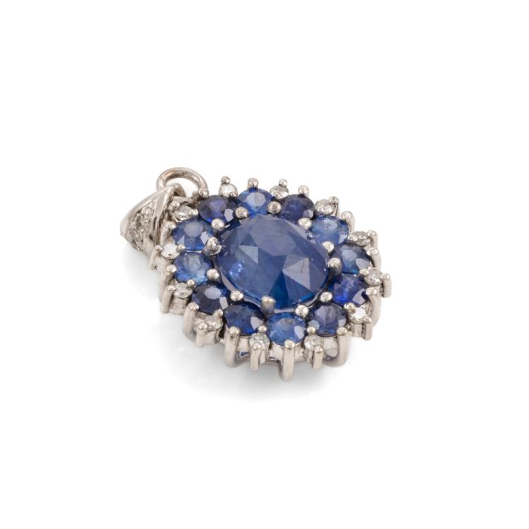 Blue Sapphire and Diamond Pendant