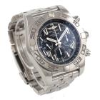 Breitling Chronomat 44 stainless steel automatic mens watch. Black chronograph dial, date, case diameter: 44mm, wrist size: 17.5cm, Swiss made. Ref# AB011012/BD89. With Breitling stainless steel bracelet and clasp. With Certificate of Authenticity, Breitling International warranty E-card dated 19/09/2018, Spare Breitling black rubber strap with clasp and Breitling box. 3 month FSA warranty. (Pre-owned)