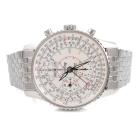 Breitling Navitimer Montbrillant Datora stainless steel automatic mens watch. Ivory chronograph dial, date, case diameter: 43mm, wrist size: 19.5cm, Swiss made. Ref# A21330. With Breitling stainless steel bracelet and clasp. With Certificate of Authenticity and Breitling box with Breitling case inside. 3 month FSA warranty applies. (Pre-owned)