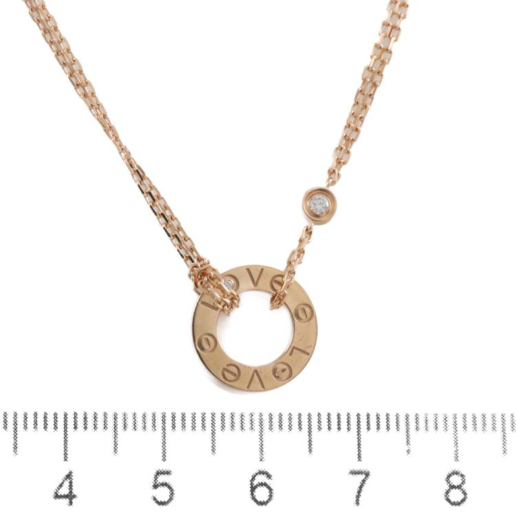Cartier Love necklace with 2 round Diamonds totalling 0.03cts. 18ct rose gold with Cartier 18ct rose gold attached chain. Adjustable max length: 38.0cm - 41.0cm. Weight: 6.1g. With Cartier Authenticity Certificate dated 16/12/21 and Cartier pouch and copy of purchase receipt dated 16/12/21. (Pre-owned)