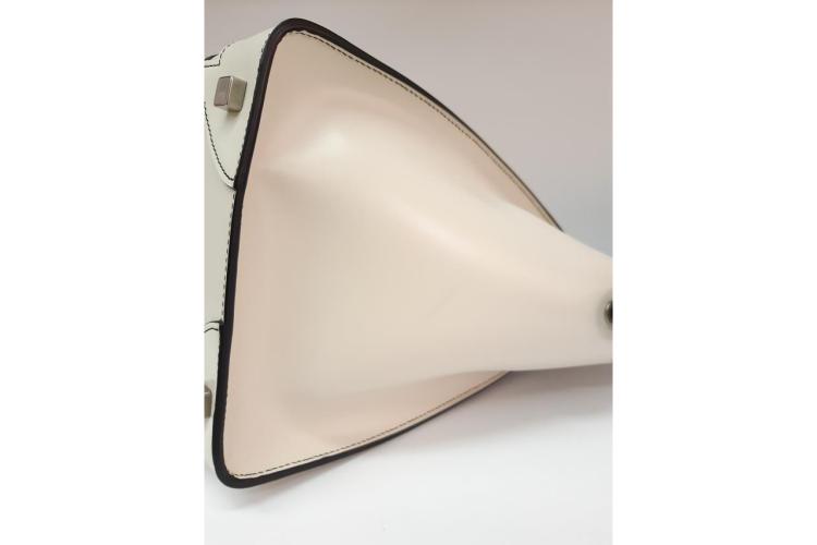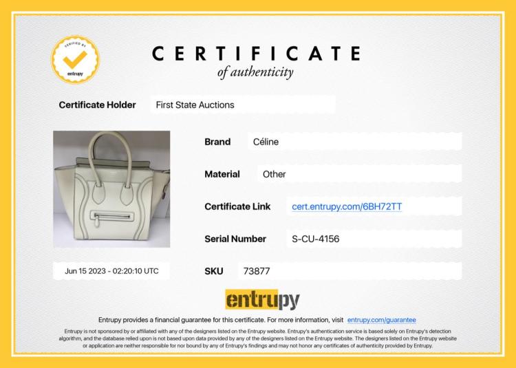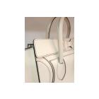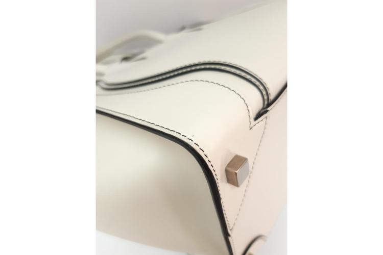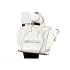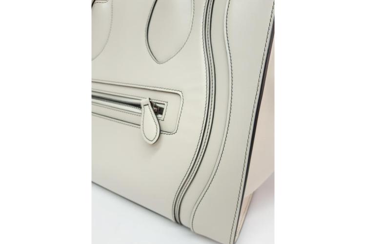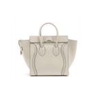 Celine Mini luggage tote in beige leather. Featuring silver/metal-toned hardware, dual leather top handles, expandable sides, a front zipped pocket and zipped closure on top. The top opens to beige leather lining interior with zipper and patch pockets. Approximate dimensions: 31cm(L) x 31cm(H) x 17.5cm(D), 13cm handle drop. Accompanied by purchase receipt dated 02/10/17 and Celine dust bag. With Entrupy Certificate of Authenticity. (Pre-owned)