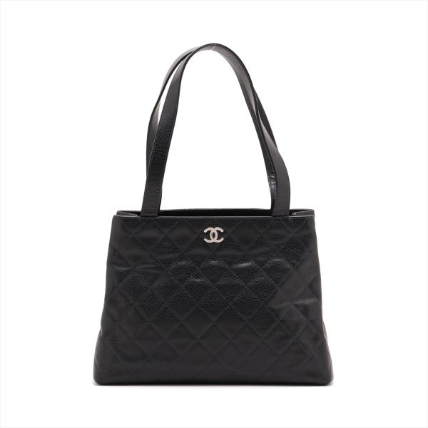 Chanel CC Shopper tote in black diamond-quilted Caviar leather. Featuring silver-toned hardware, interlocking CC logo at front and double flat shoulder straps. The top opens to a black Nylon interior with two large compartments and a dividing zipper pocket in the middle. Approximate dimensions: 31cm(L) x 23.5cm(H) x 10.5cm(D), handle drop 23cm. Accompanied by a Chanel certificate card and info booklet. With Entrupy Certificate of Authenticity. (Pre-owned)