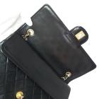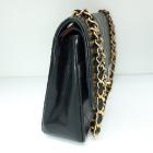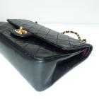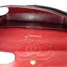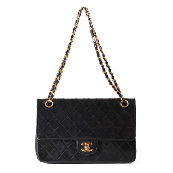 Chanel vintage medium classic double flap bag in black lambskin leather (Serial#3xxxx8). Featuring gold-toned hardware, exterior back patch pocket, and CC logo with turn-lock closure at front of flap. This opens to a black interior flap and burgundy leather interior with patch pockets. Approximate dimensions: 24.5cm(L) x 16cm(H) x 6cm(D), doubled strap drop 22cm. With Entrupy Certificate of Authenticity. (Pre-owned)