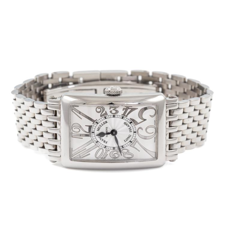 Franck Muller Long Island stainless steel quartz ladies watch. Silver dial, approximate case diameter: 33mm x 23mm, wrist size: 17cm, Swiss made. Ref# 902QZREL. With Franck Muller stainless steel bracelet and clasp. With Certificate of Authenticity, Undated Franck Muller Certificate of Origin & Warranty and Franck Muller box. 3 month FSA warranty. (Pre-owned)