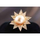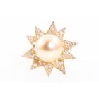 Golden South Sea Pearl & Diamond Ring 18ct Gold 9.9g*
