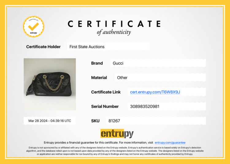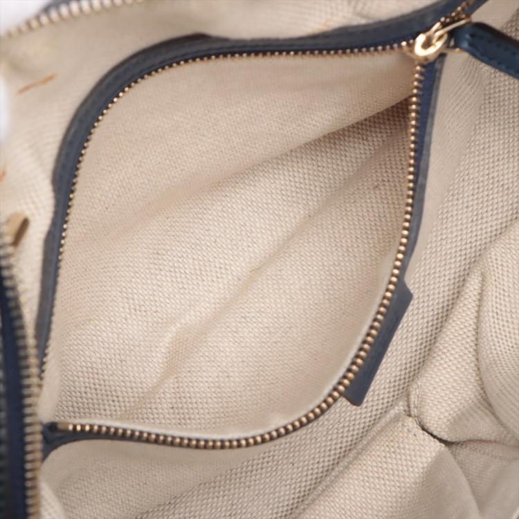 Gucci Soho chain shoulder bag in navy blue to grey patent leather. Featuring a large stitched frontal GG logo, light gold tone hardware, a gold tipped tassel as zipper puller. This opens to a natural linen interior with zipped and patch pockets. Approximate dimensions: 28cm(L) x 17.5cm(H) x 8cm(D), 24cm double gold chain drop height. Accompanied by a Gucci dust bag. With Entrupy Certificate of Authenticity. (Pre-owned)