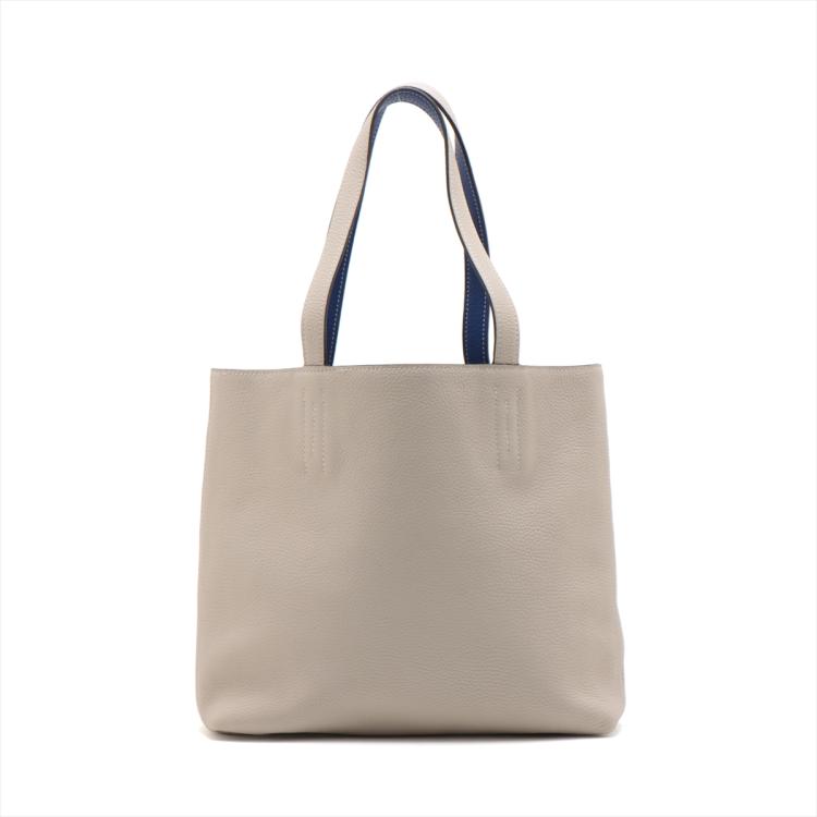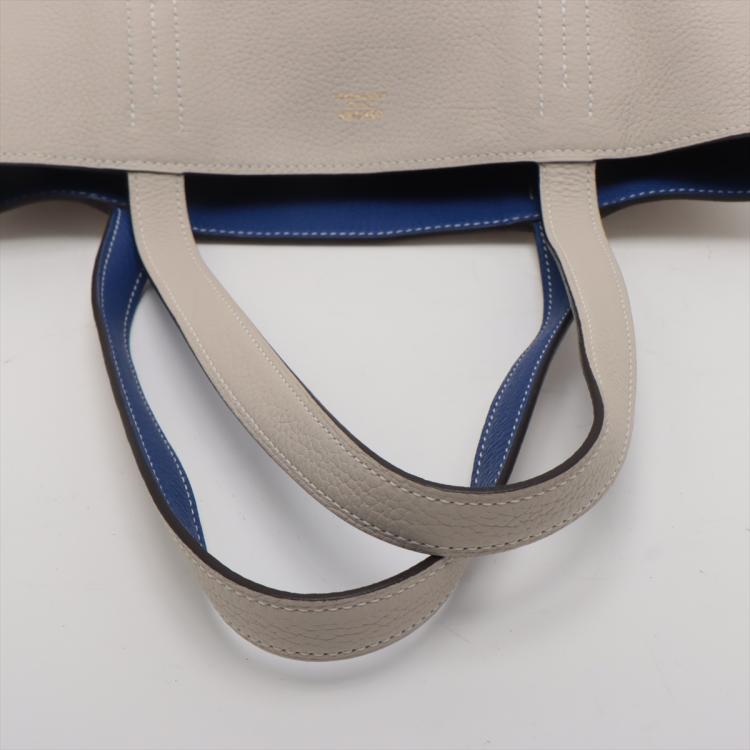 Hermes Double Sens 28 reversible tote in Taurillon Clemence leather (A stamp, circa: 2017). Featuring double leather handles, white stitches, the bag is reversible with one side Beton and the reverse side Blue Electric colour. Approximate dimensions: 28cm(L) x 27cm(H) x 10cm(D), 20cm handle drop. Accompanied by a Hermes dust bag. With Entrupy Certificate of Authenticity. (Pre-owned)