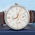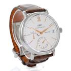 IWC Schaffhausen Portofino stainless steel manual winding mens watch. Silver dial, small second, date, case diameter: 45mm, adjustable max wrist size: 17.5cm, Swiss made. Ref# IW510103. With IWC brown leather strap and clasp. With Certificate of Authenticity, IWC Guarantee card dated 03/12/2013 and IWC box. 3 month FSA warranty (Pre-owned)
