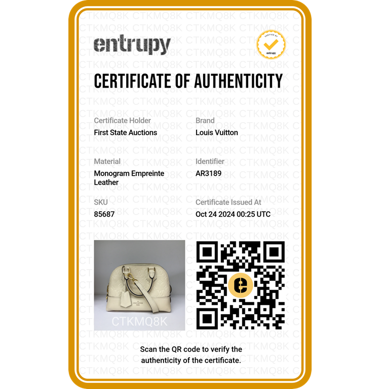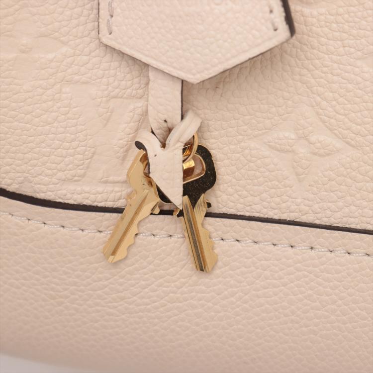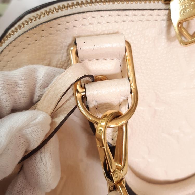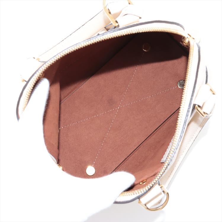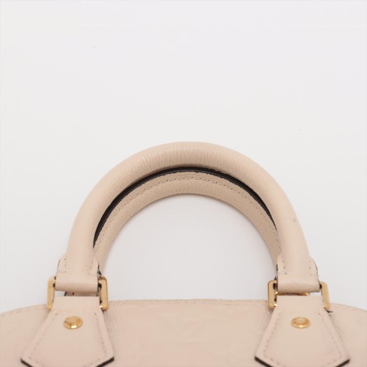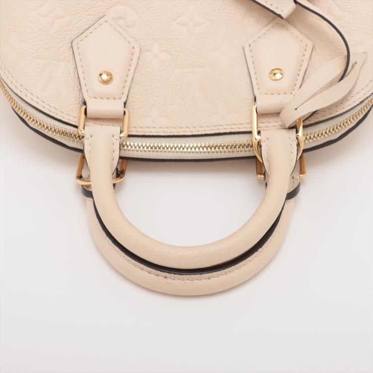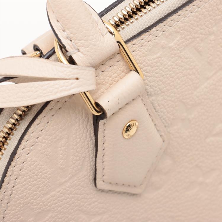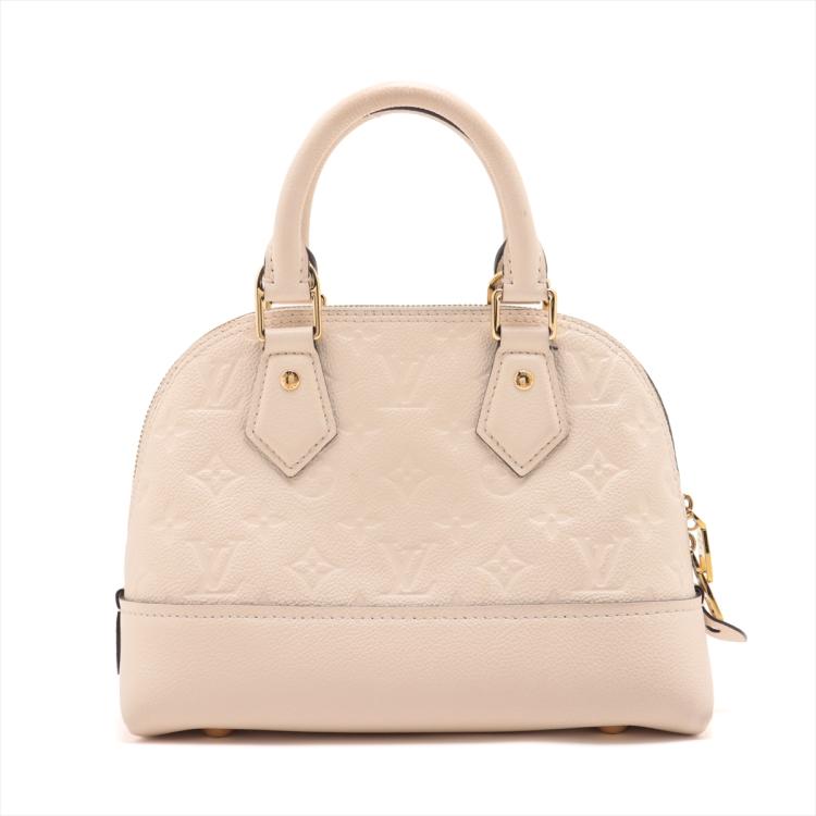 Louis Vuitton Neo Alma BB in crème Empreinte leather. Featuring gold-toned hardware, rolled top leather handles, and detachable shoulder strap. The double zipper closure opens to a brown microfibre lining interior with a patch pocket. Approximate dimensions: 25cm(Base-L) x 18cm(H) x 11cm(D), handle drop 8.5cm, strap drop 58cm. Accompanied by clochette with keys, padlock, LV dustbags and box. With Entrupy Certificate of Authenticity. (Pre-owned)