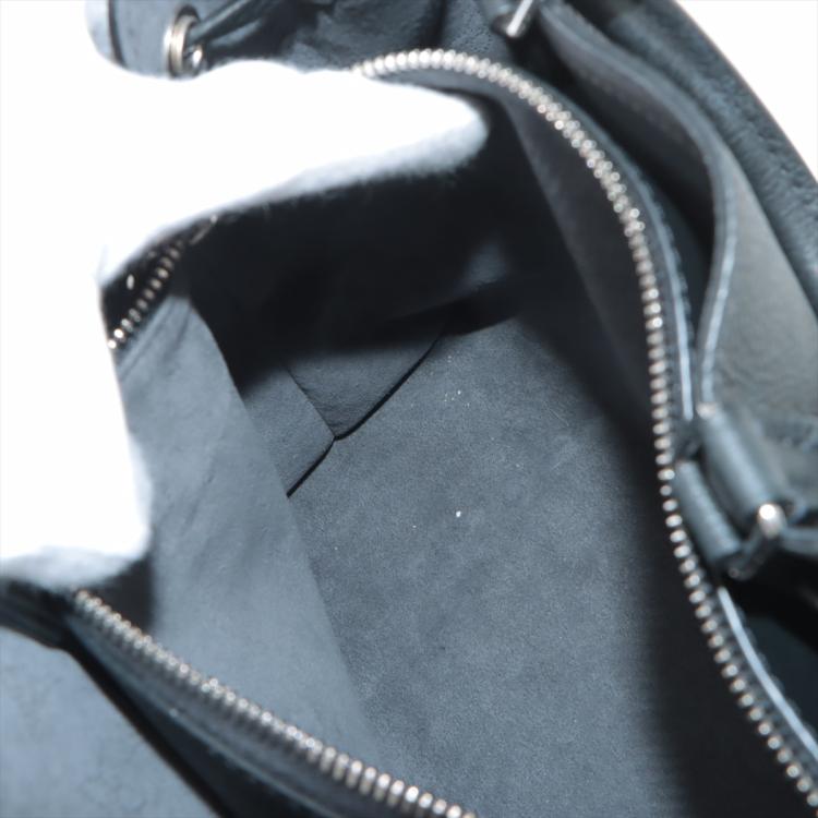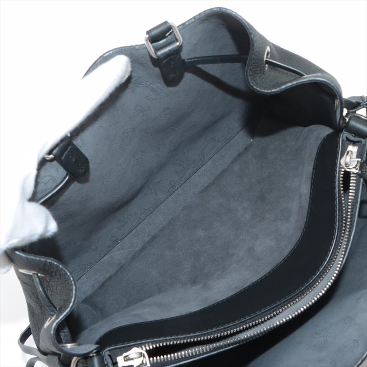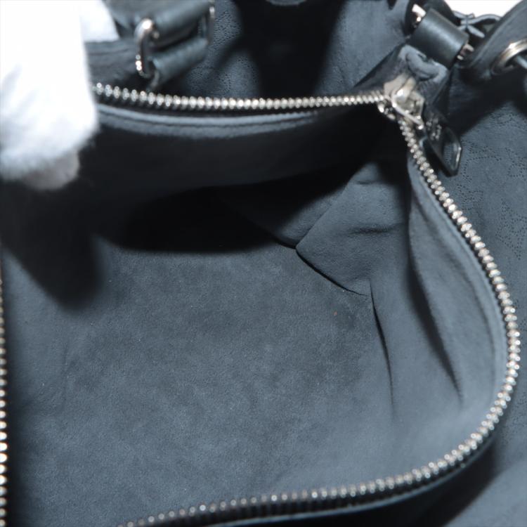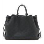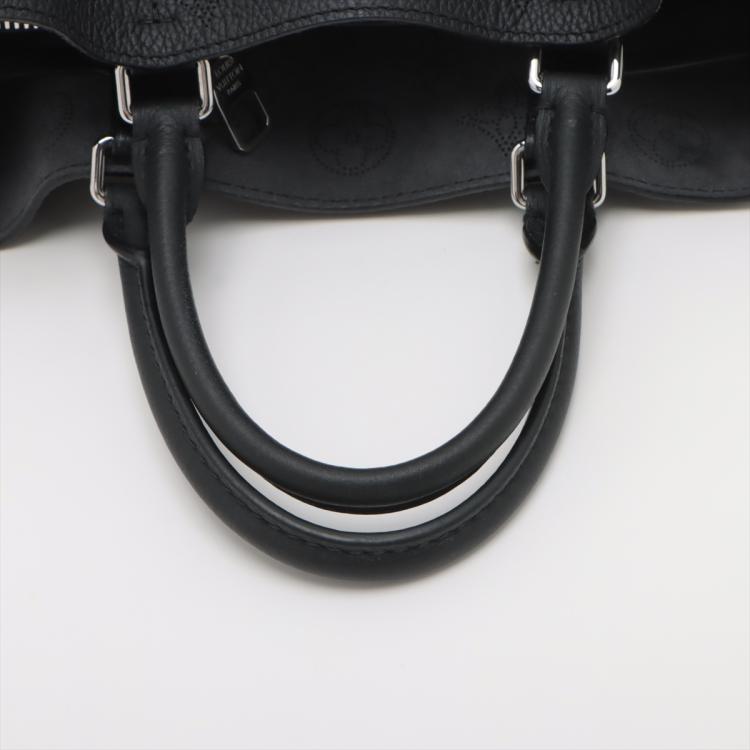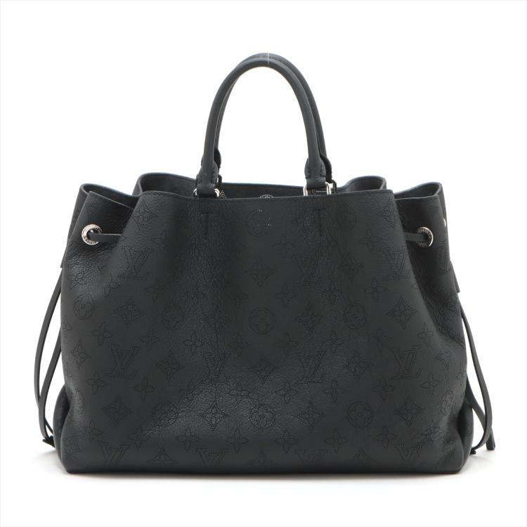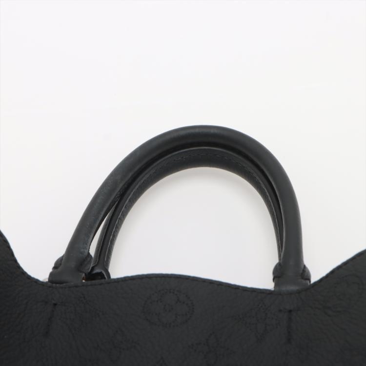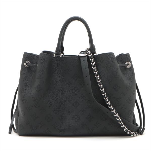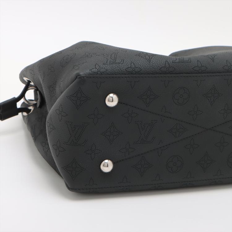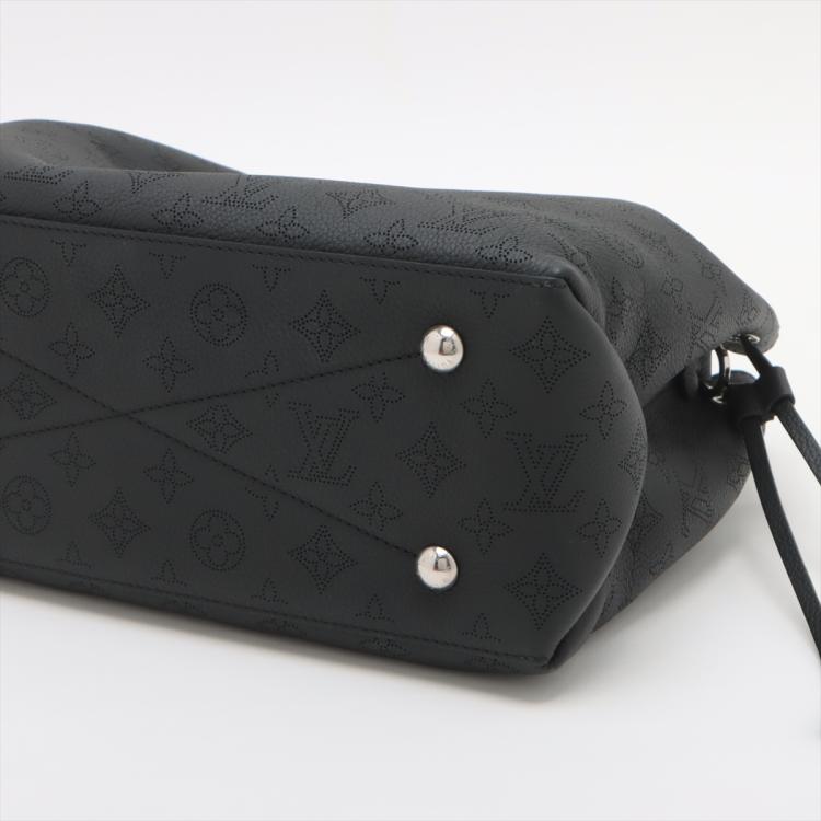 Louis Vuitton Bella tote bag in black Mahina perforated calfskin leather. Featuring silver-toned hardware, rolled handles, detachable shoulder strap & leather-chain handle. Top with leather drawstring opens to microfibre interior with two compartments separated by zipper pocket. Approx dimensions: 33cm(Base-L) x 24cm(W) x 13cm(D), handle drop 11cm, strap drop 54cm. Accompanied by LV purchase receipt, box and dustbag. With Entrupy Certificate of Authenticity. (Pre-owned)