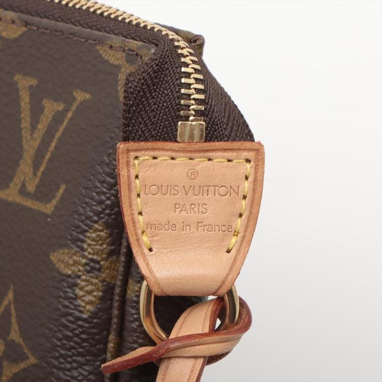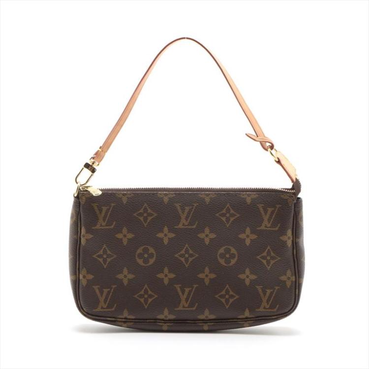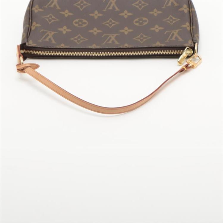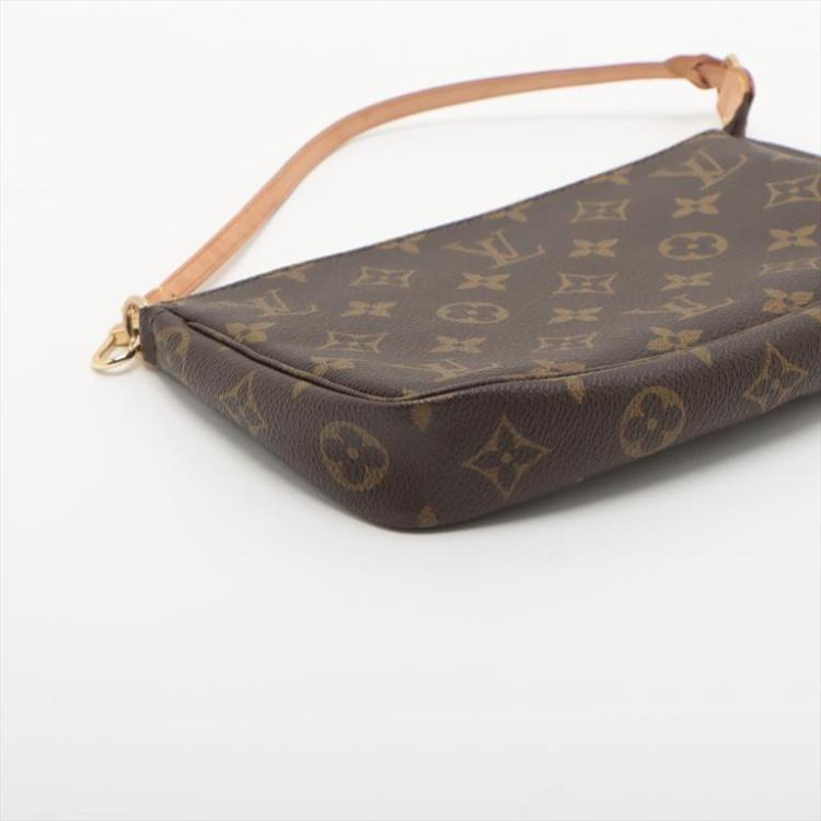 Louis Vuitton Pochette Accessoir in Monogram coated canvas. Featuring gold-toned hardware, convertible vachetta leather carry strap to wrist strap. The zipper closure opens to a dark brown textile interior. Approximate dimensions: 21.5cm(L) x 12cm(H) x 4cm(D), strap drop 15cm. Accompanied by LV dust bag and box. With Entrupy Certificate of Authenticity. (Pre-owned)