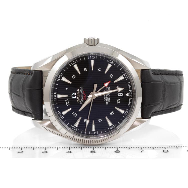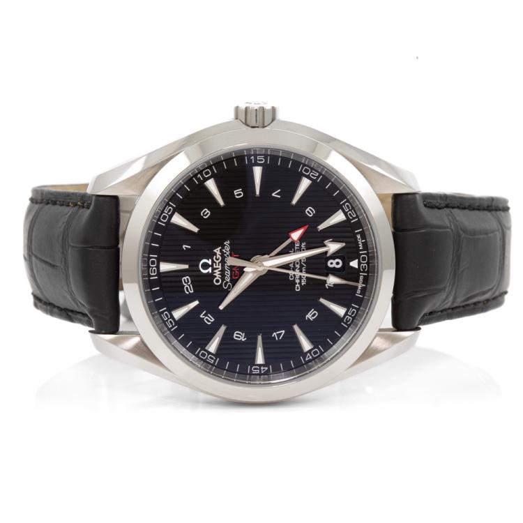 Omega Seamaster Aqua Terra stainless steel automatic mens watch. Black dial, date, case diameter: 43mm, adjustable max wrist size: 19cm, Swiss made. Ref# 231.13.43.22.001. With Omega black leather strap and clasp. With Certificate of Authenticity, Omega International Warranty dated 30/05/2021, Pictograms card and Omega box. Balance of 5 year Omega manufacturer warranty applies. (Pre-owned)