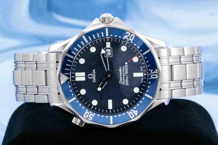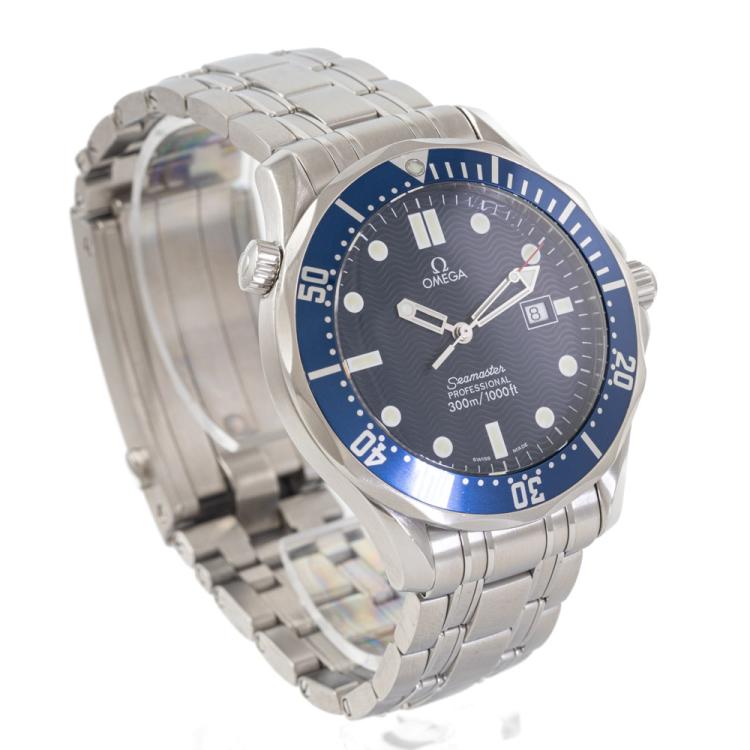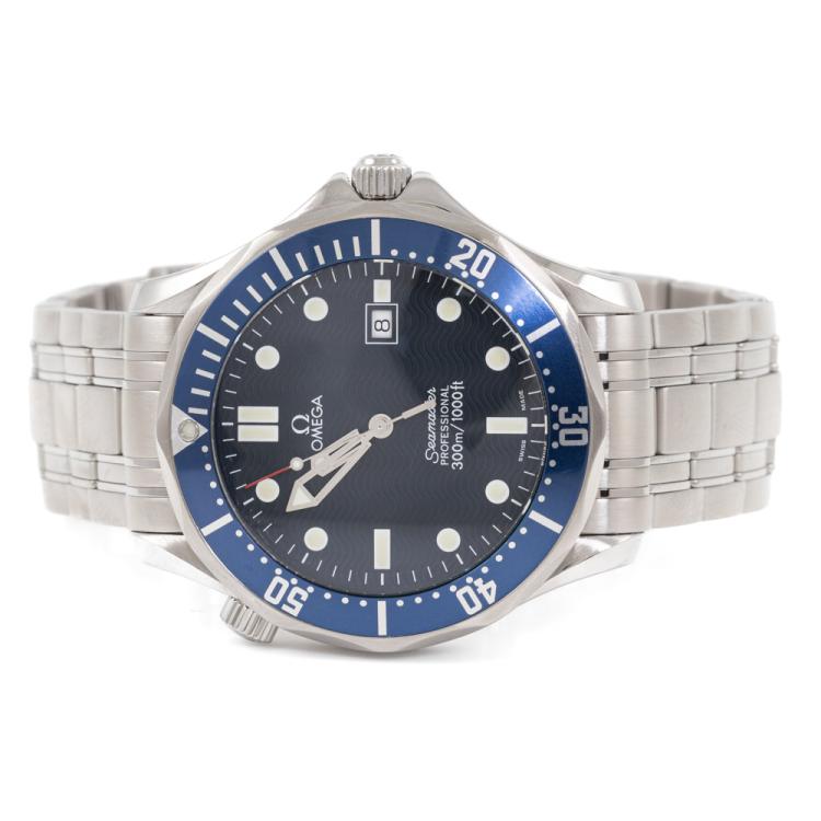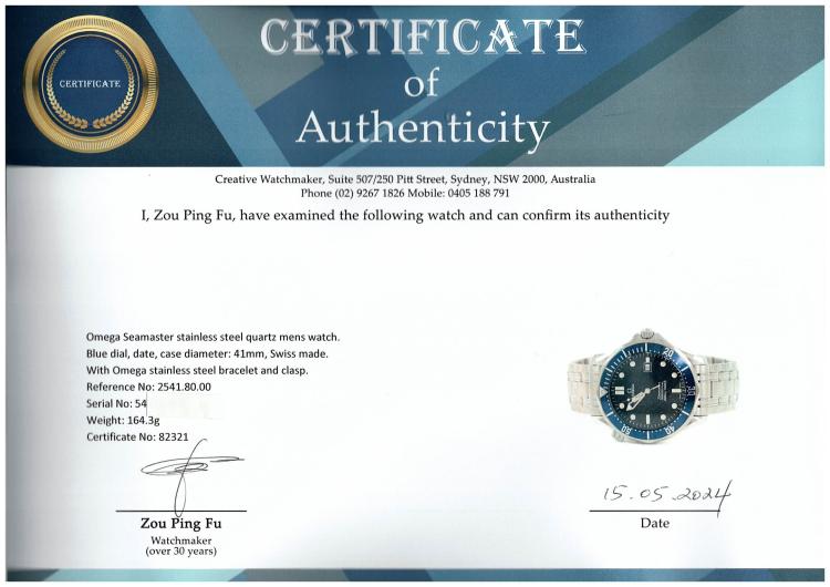 Omega Seamaster stainless steel quartz mens watch. Blue dial, date, case diameter: 41mm, wrist size: 19cm, Swiss made. Ref# 2541.80.00. With Omega stainless steel bracelet and clasp. With Omega stainless steel bracelet and clasp. With Omega stainless steel bracelet and clasp. With certificate of authenticity and Omega case. 3 month FSA warranty. (Pre-owned)