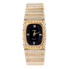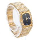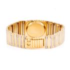 Omega Vintage 18ct yellow & white gold ladies quartz watch. Black dial, Diamond set bezel, approx. case diameter: 22mmx 19mm, wrist length: 16cm, Swiss made. With Omega two-tone Diamond set bracelet and clasp. With Certificate of Authenticity and Omega case. No warranty applies. (Pre-owned)