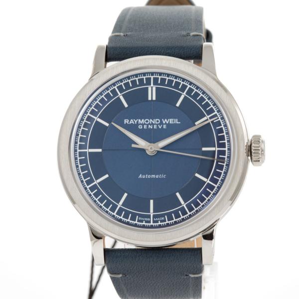 Raymond Weil Millesime stainless steel automatic mens watch. Blue dial, case diameter: 39.5mm, adjustable max wrist size: 21cm, Swiss made. Ref# 2925-STC-50001. With Raymond Weil blue leather strap and buckle. With Raymond Weil Guarantee card and Raymond Weil box. 12 month FSA warranty (As new, Note: case on wrapping and minor wear marks on strap due to being display stock)