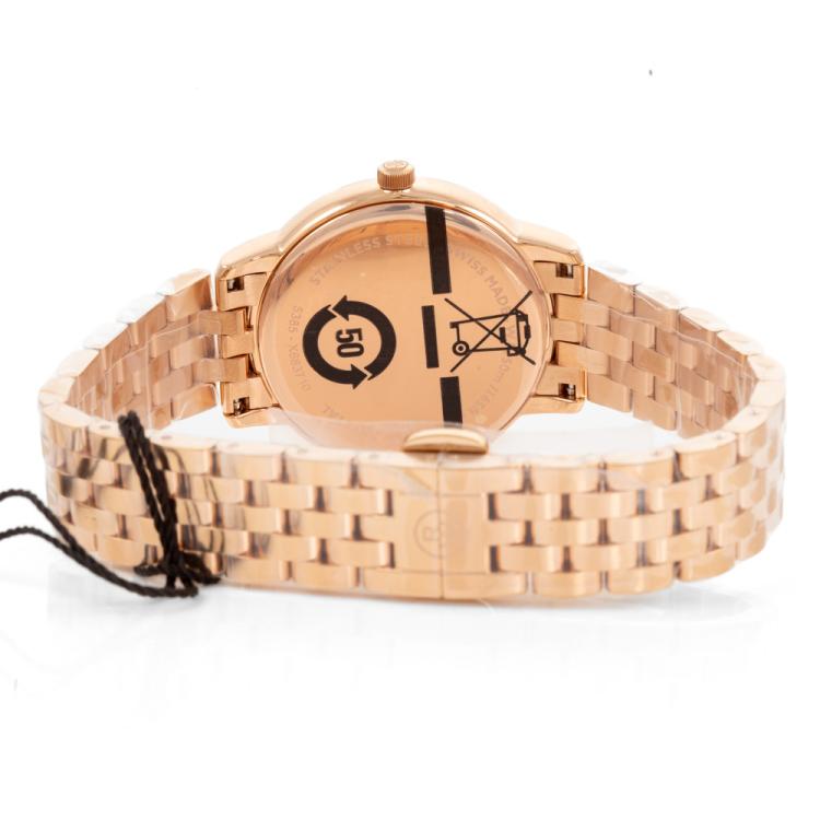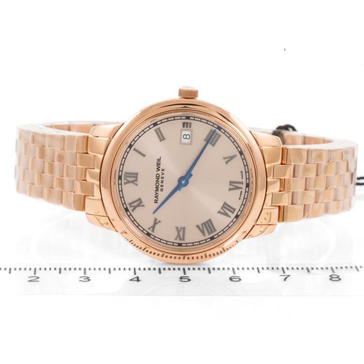 Raymond Weil Toccata rose gold PVD plated with stainless steel quartz ladies watch. Rose gold dial, date, case diameter: 34mm, wrist size: 17.5cm, Swiss made. Ref# 5385-P5-00859. With Raymond Weil rose gold PVD plated bracelet and clasp. With Raymond Weil Guarantee card and Raymond Weil box. 12 month FSA warranty (As new, Note: case and bracelet on original wrapping)