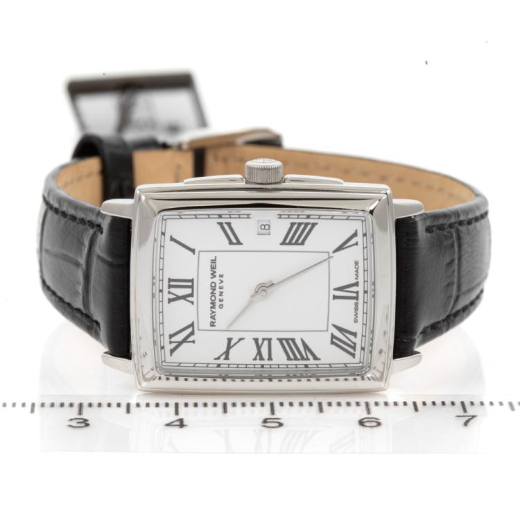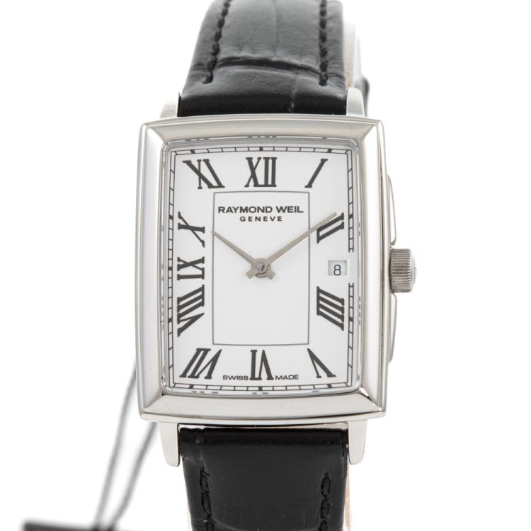 Raymond Weil Toccata stainless steel quartz ladies watch. White dial, date, case diameter: 28.1mm x 22.6mm, strap length: 18cm, Swiss made. Ref# 5925-STC-00300. With Raymond Weil black leather strap and buckle. With Raymond Weil Guarantee card and Raymond Weil box. 12 month FSA warranty (As new, Note: case in original wrapping)