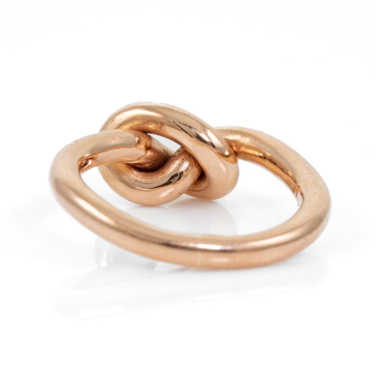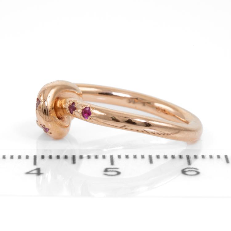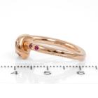 Sapphire and Ruby ring with round natural pink Sapphires totalling approximately 0.16cts and round Natural Rubies totalling approximately 0.04cts. 18ct rose gold. Ring size H½ - ring resize is not recommended. Band Width: 2.3mm. Weight: 5.8g. (Pre-owned)