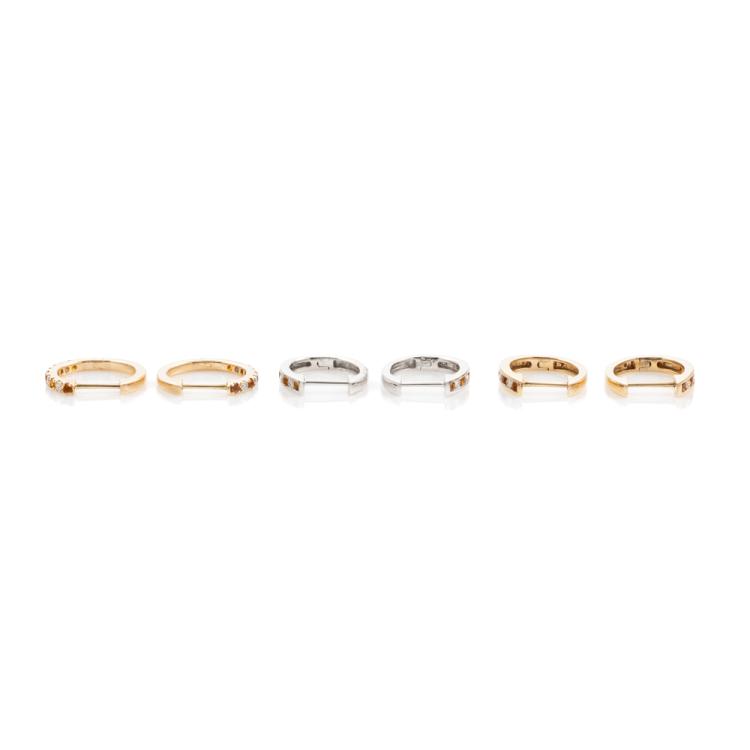 Set of 3 huggie earrings. Each earrings with round Natural Citrine totalling approximately 0.10ct and round Natural Diamonds totalling 0.10ct. 2 pairs with 9ct yellow & 1 pair with 9ct white gold. Total weight: 5.4g. (As New)