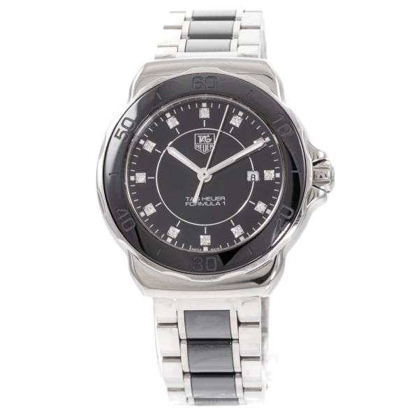 TAG Heuer Formula 1 stainless steel and ceramic quartz watch. Black dial, date, Diamond indicators, case diameter: 31mm, wrist size: 15cm, Swiss Made. Ref# WAH1314. With TAG Heuer 2-tone bracelet and clasp. With Certificate of Authenticity, TAG Heuer Guarantee card dated 27/06/2014 and TAG Heuer Precious Stone Certificate. With 3 month FSA warranty. (Pre-Owned)