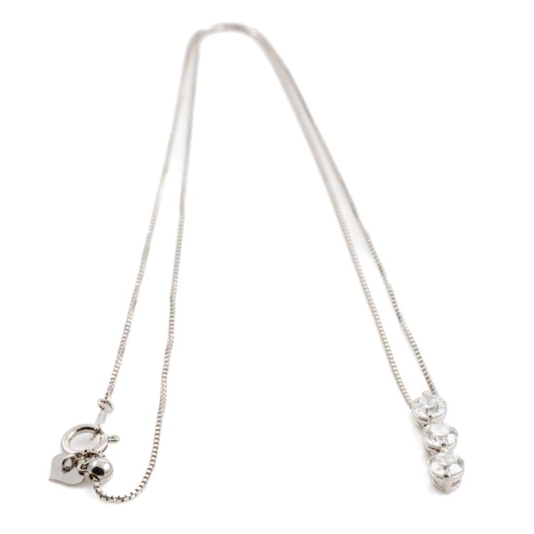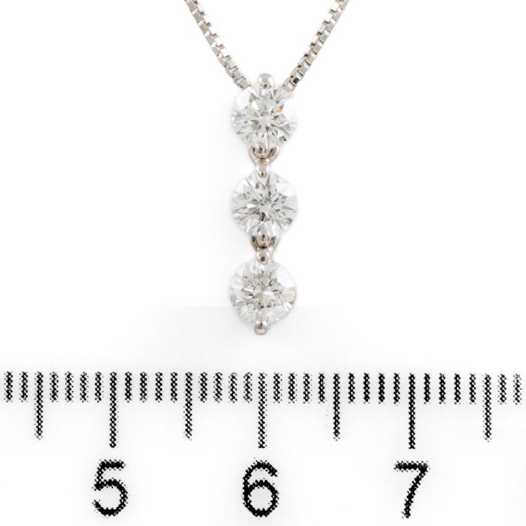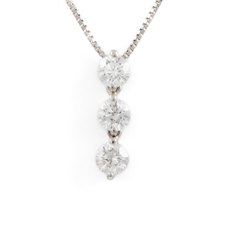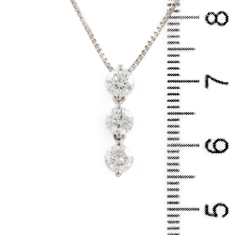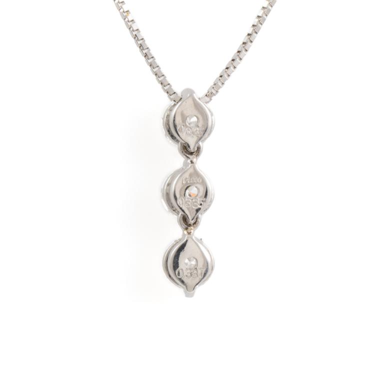 Diamond drop pendant with 3 round Diamonds totalling 0.99ct (Estimated grading: H SI). Platinum-900 with 44cm platinum-850 adjustable chain. Weight: 3.9g. (Pre-owned)