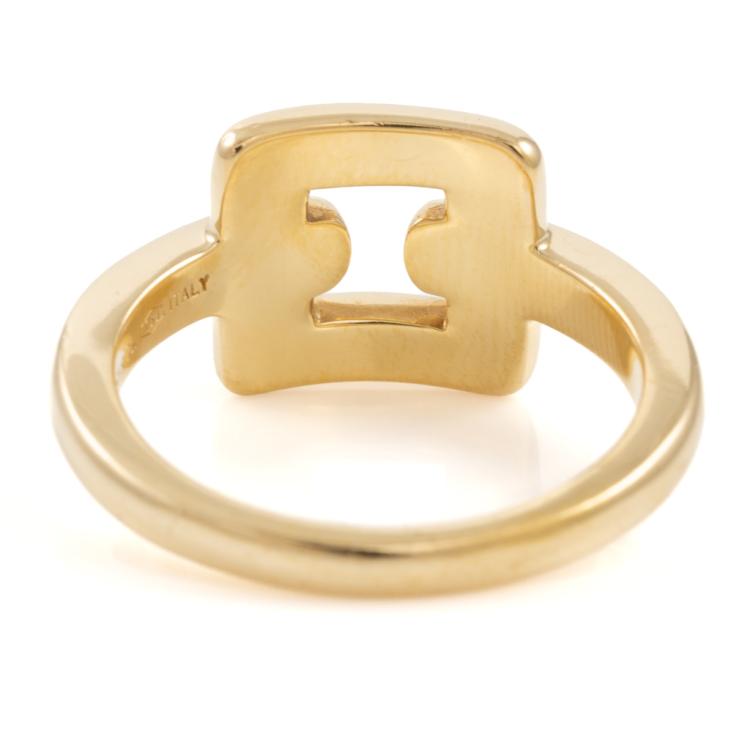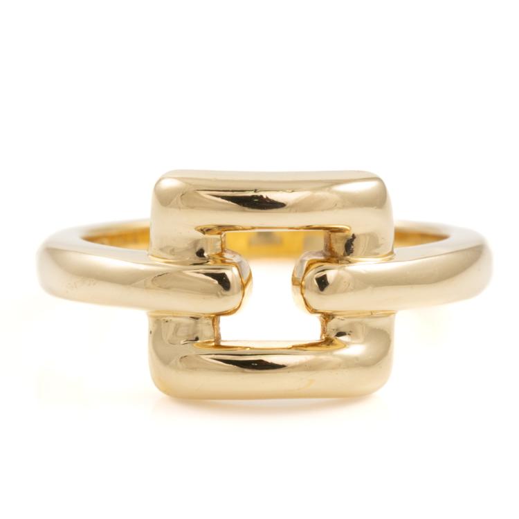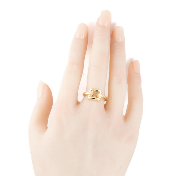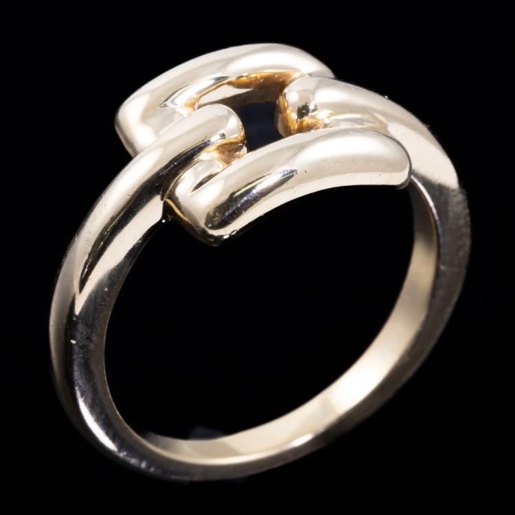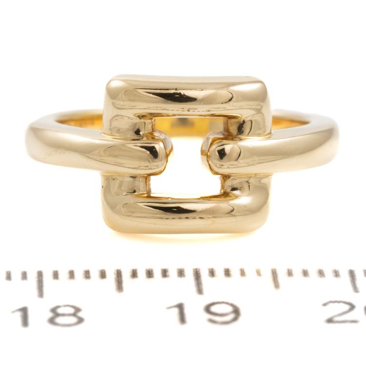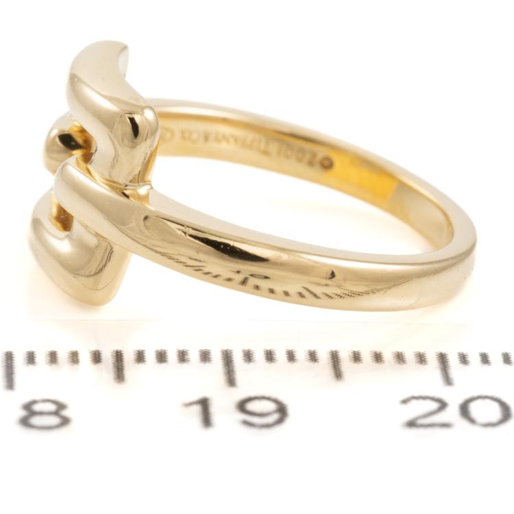 Tiffany & Co. Buckle ring. 18ct yellow gold. Ring size: M - ring resizing is not recommended. Band width: 2.2mm. Circa: 2001. Weight: 6.5g. (Pre-owned)