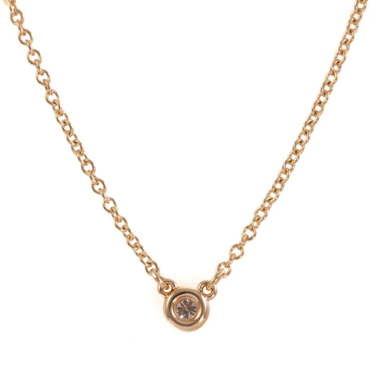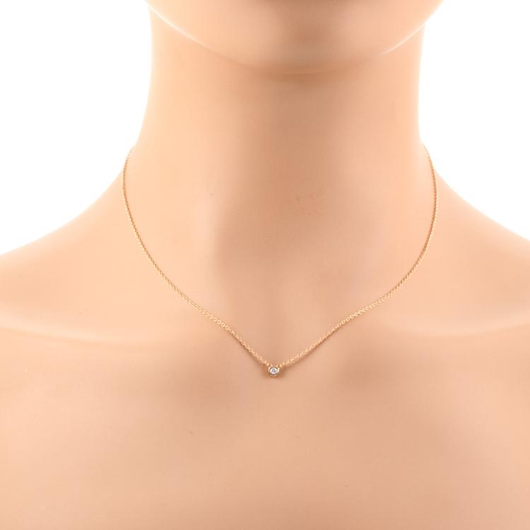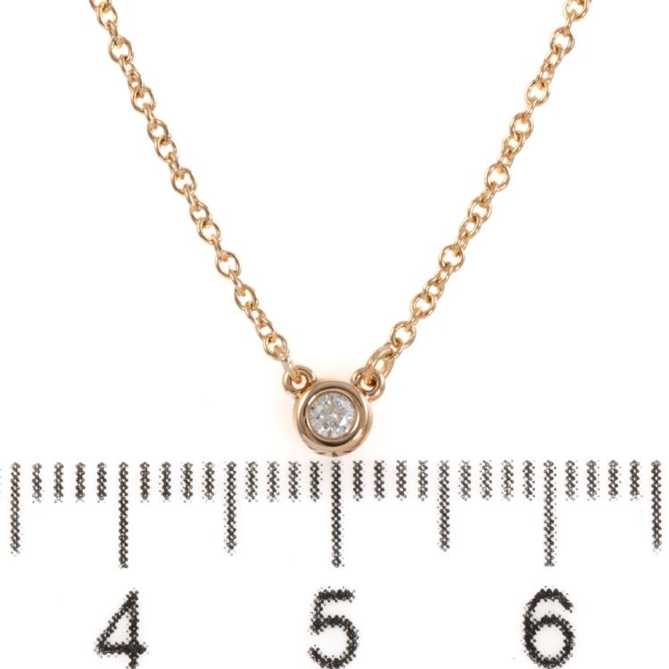 Tiffany & Co Elsa Peretti Diamonds by the Yard single Diamond pendant with a round Natural Diamond of 0.05ct. 18ct rose gold with attached Tiffany & Co 18ct rose gold chain. Length: 40cm. Weight: 2.2g.(Pre-owned)