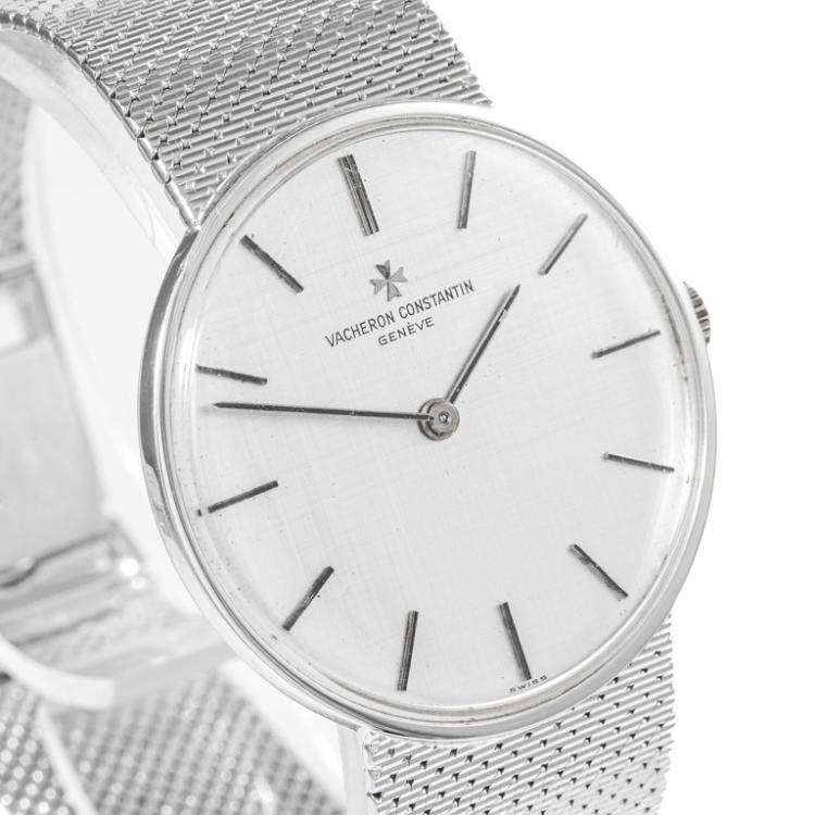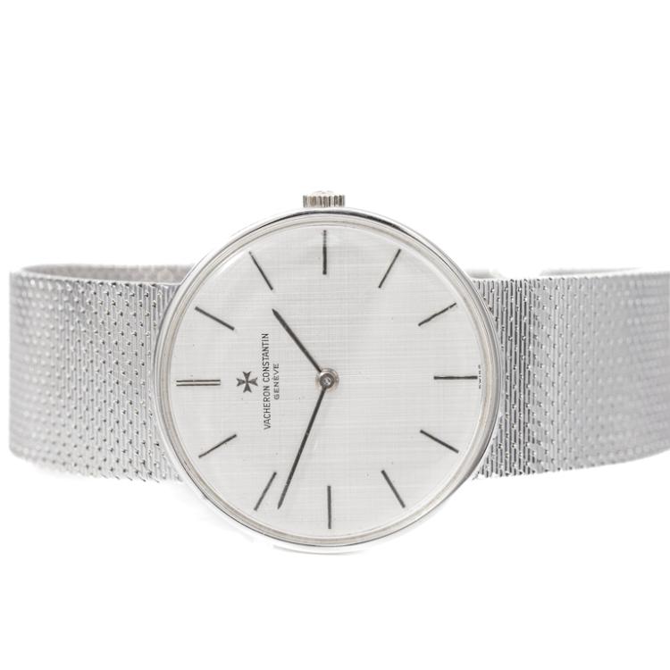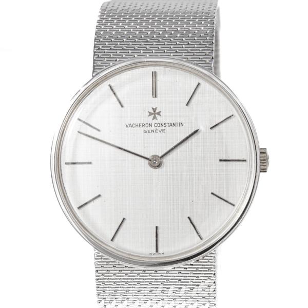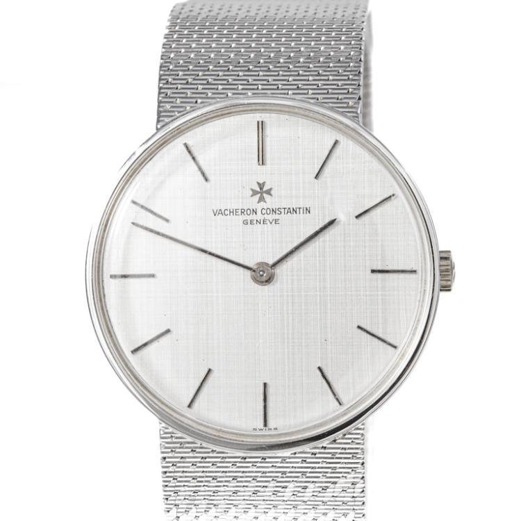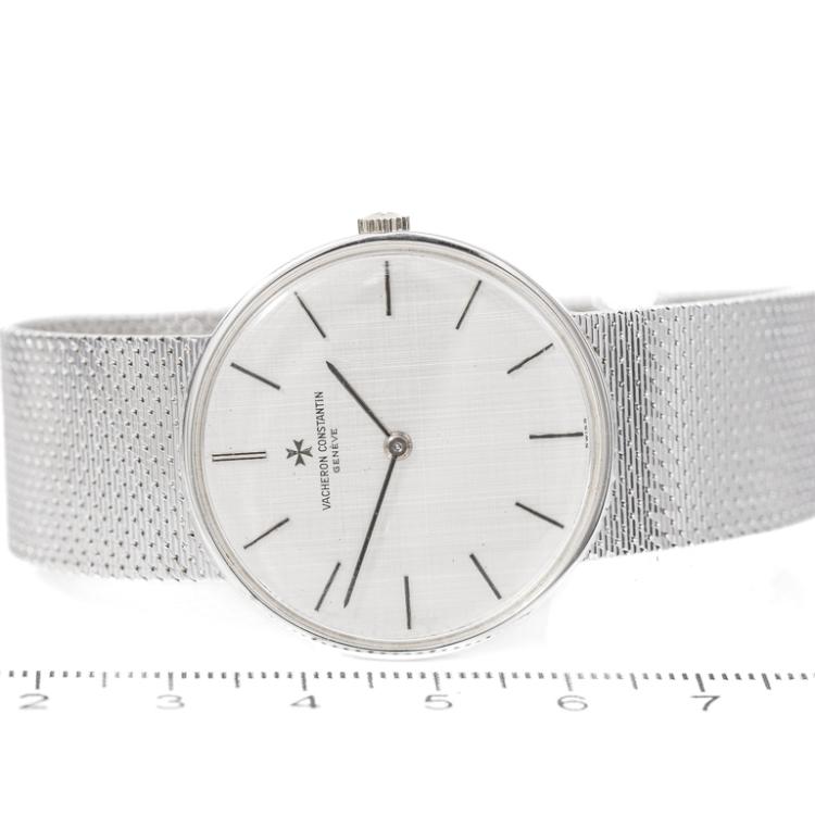 Vancheron Constantin 18ct white gold manual winding watch. Silver dial, case diameter: 32mm, wrist size: 17cm, Swiss made. Ref# 2018. With Vacheron Constantin 18ct gold bracelet and clasp. With Certificate of Authenticity. 3 month FSA warranty. (Pre-owned)