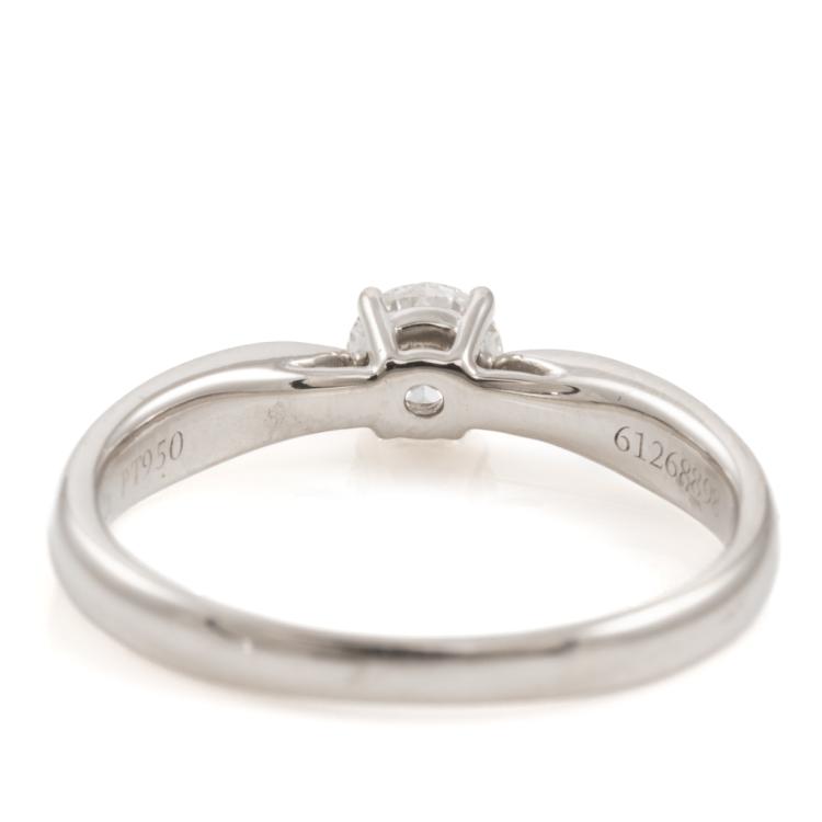 Tiffany & Co Harmony Diamond Solitaire ring with a brilliant round cut Natural Diamond of 0.21ct (Tiffany Certificate graded as E IF). Platinum - 950. Ring size H - ring resizing is not recommended. Weight: 2.6g. Tiffany & Co box and Tiffany Diamond Certificate. (Pre-owned)