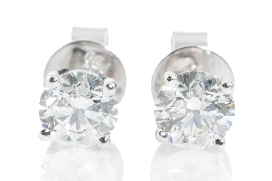 Diamond stud earrings with 2 round brilliant cut Natural Diamonds totalling 0.82ct (both with GIA summary reports graded as D VVS2 #6455866332, 645291472