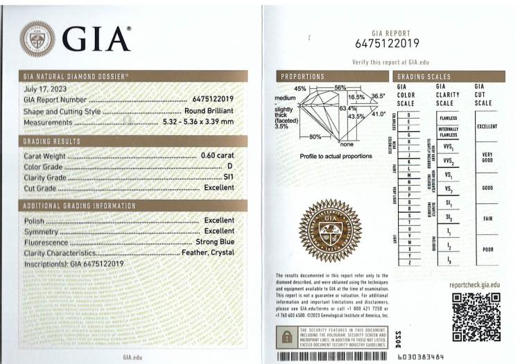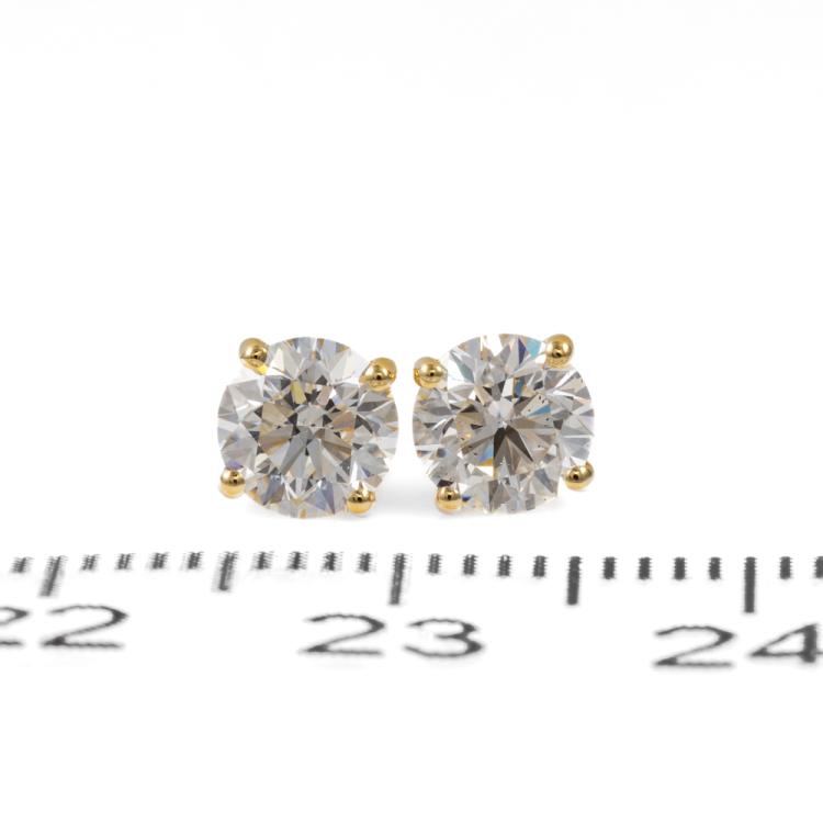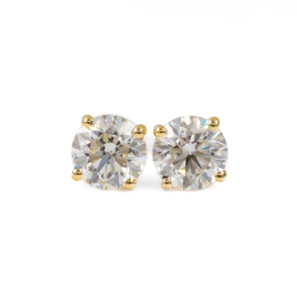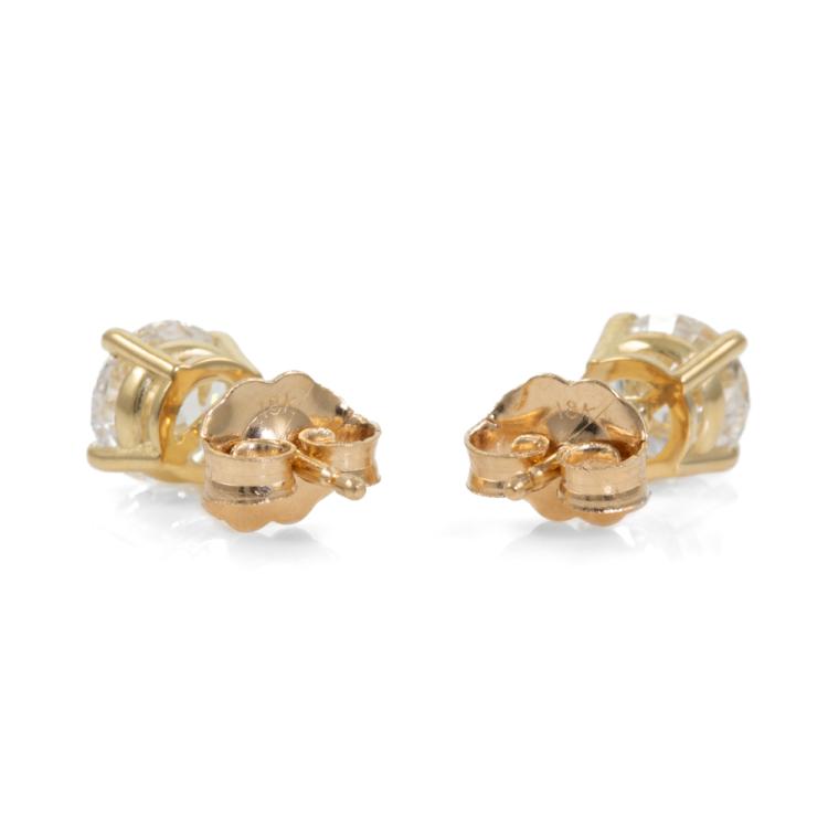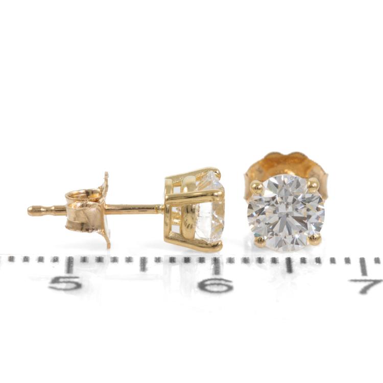 Diamond stud earrings with 2 round brilliant cut Natural Diamonds totalling 1.20cts (with GIA Summary Reports graded as D SI1 #6475122019, 5463845652). 18ct yellow gold. Weight: 1.2g. (New)