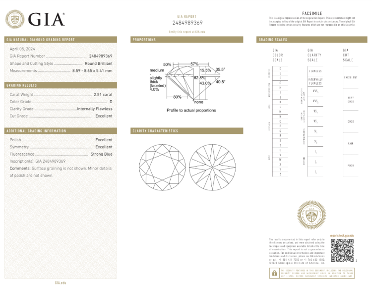 A loose round brilliant cut Natural Diamond of 2.51ct (with GIA report graded as D Internally Flawless #2484989369). (New)