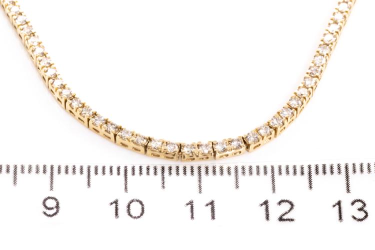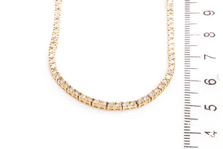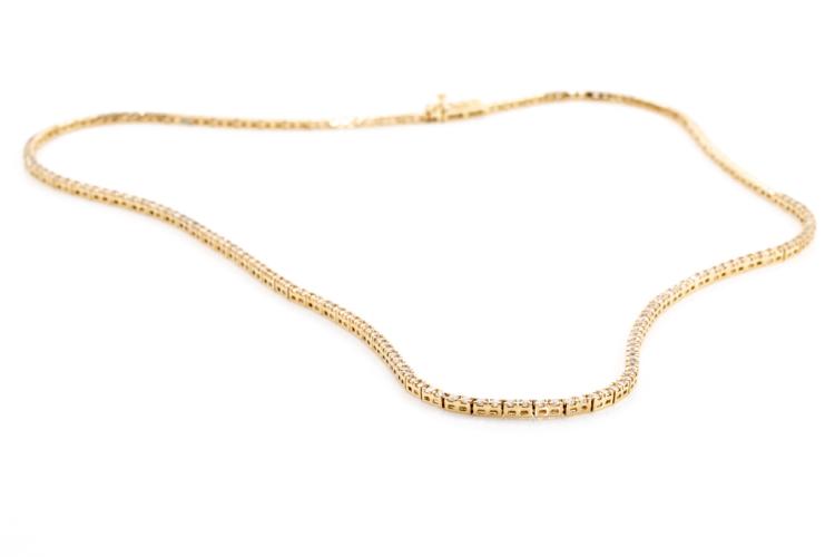 Diamond tennis necklace with 122 round Diamonds totalling 2.79cts (Estimated grading: I-J SI). Length: 45.5cm. 14ct yellow gold. Weight: 13.3g. With Certificate #416299. (New)