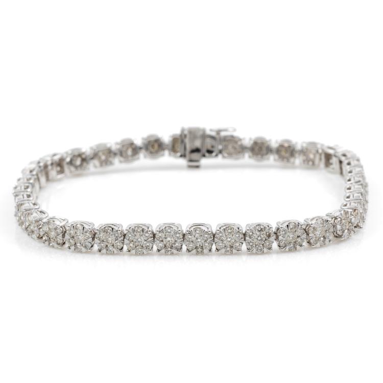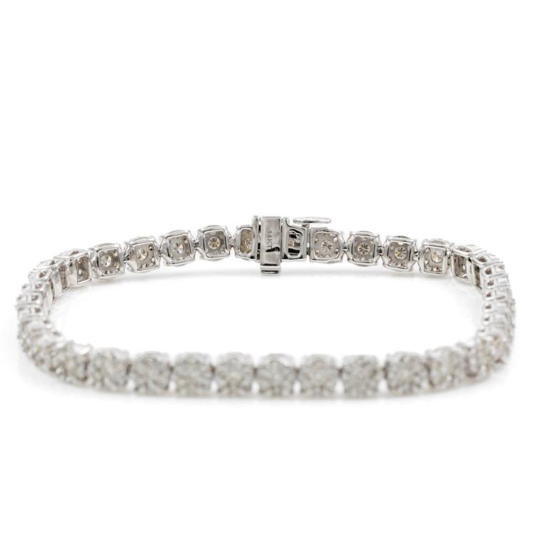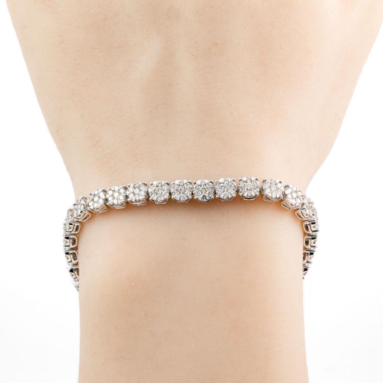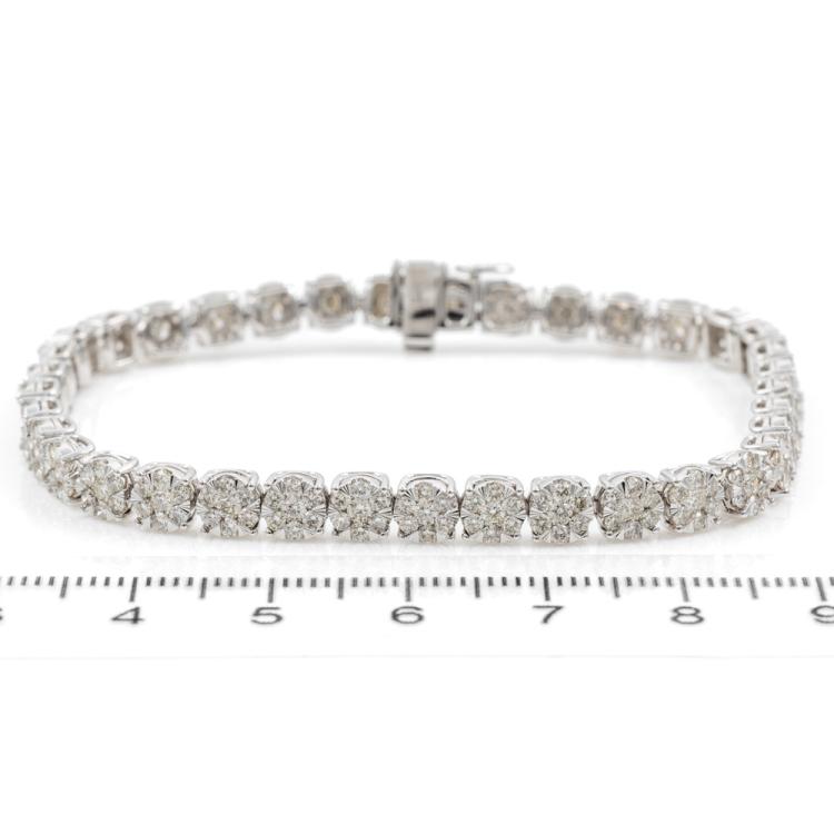 Diamond bracelet with 259 round natural Diamonds totalling 4.08ct (Estimated grading: K-L SI). 14ct white gold. Length: 18.5cm. Weight: 14.1g. With Valuation Certificate #418199. (New)