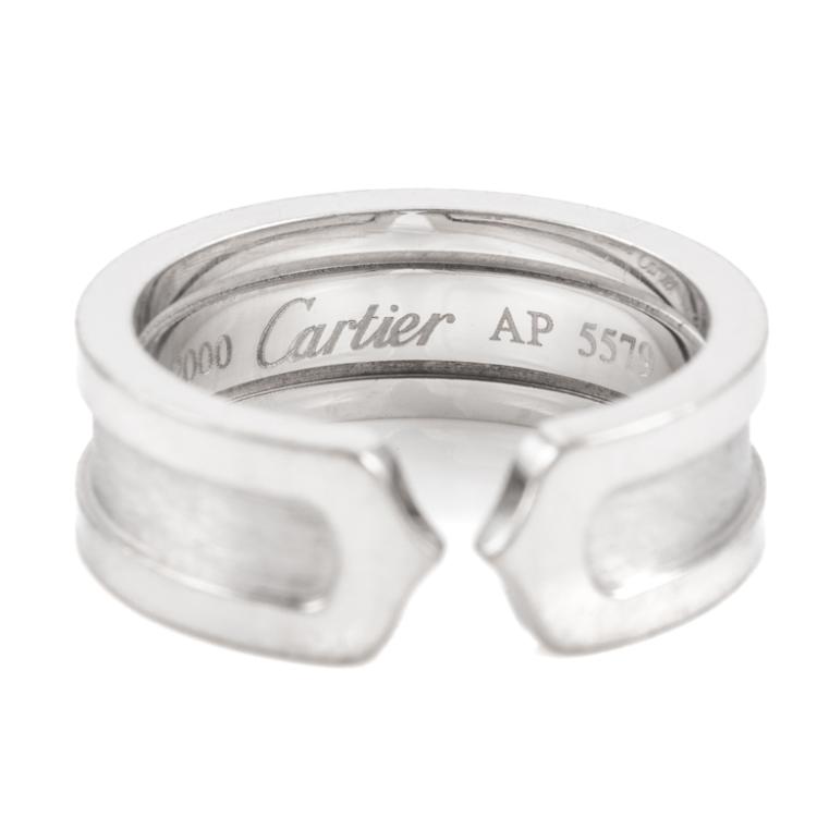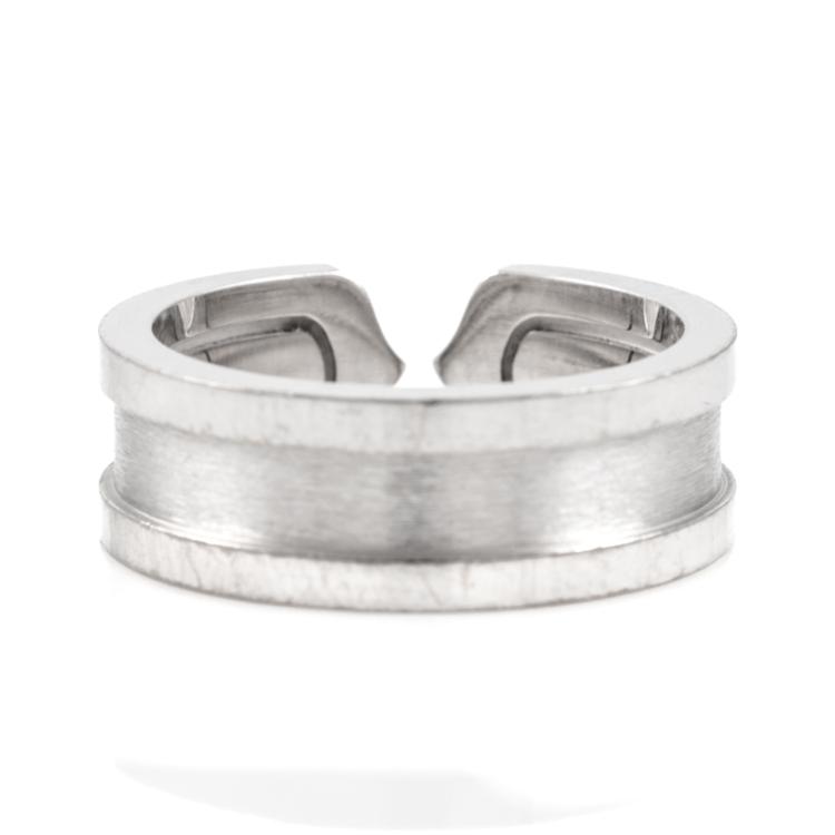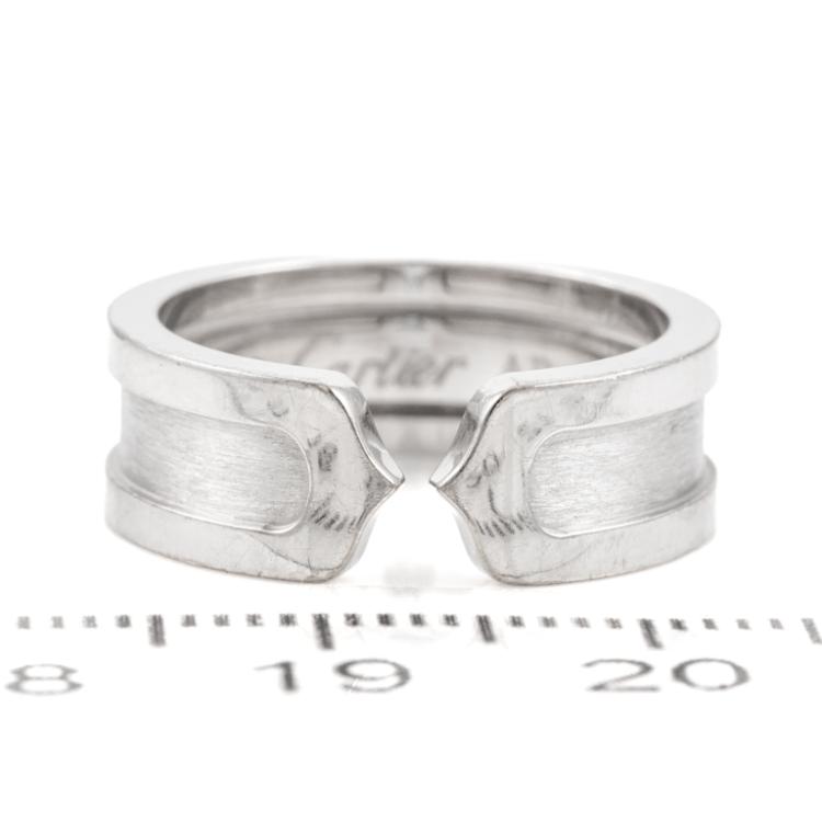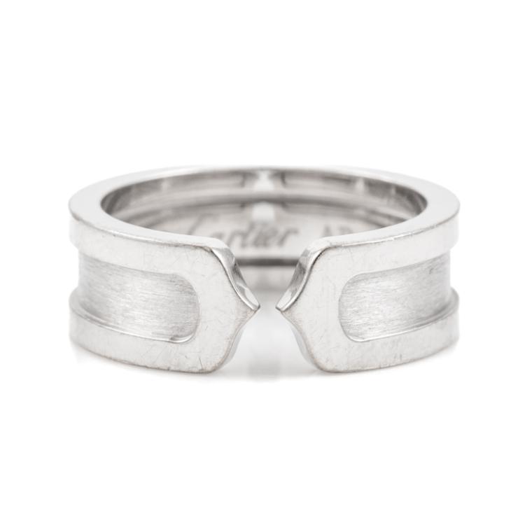 Cartier 2C ring. 18ct white gold. Cartier stamped size 50, K - ring resizing is not recommended. Band width: 10.0mm. Weight: 7.7g. With Cartier box. (Pre-owned)