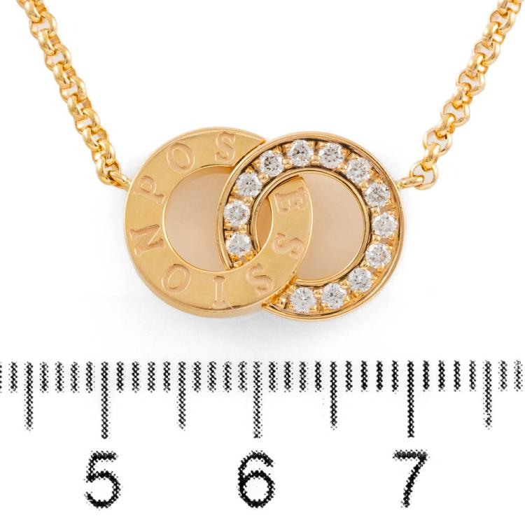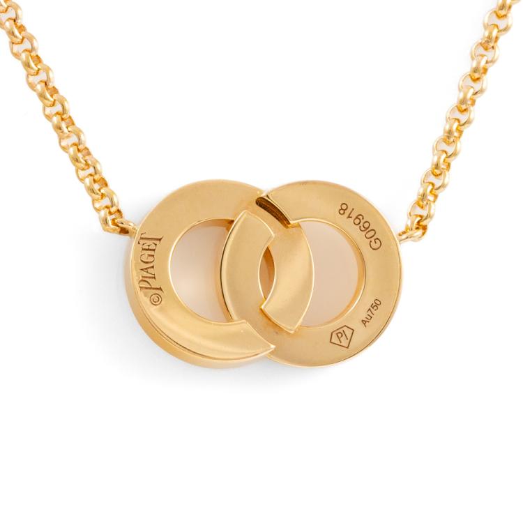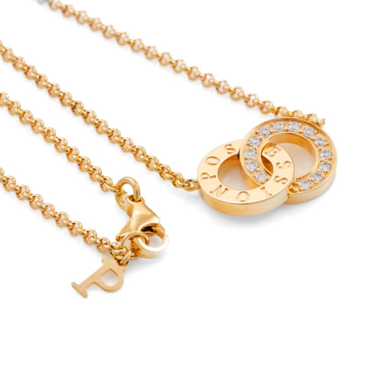 Piaget Possession Toi & Moi Diamond Necklace with 13 round Natural Diamonds totalling 0.23ct. Motif size: 1.8cm x 1.2cm. 18ct yellow gold with Piaget 18ct yellow gold adjustable attached chain. Length: 41cm. Weight: 10.9g. With Piaget Certificate of Authencity dated 12/01/2011 and Piaget box. (Pre-owned)